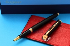 Hémisphère makes each moment refreshingly elegant. In the spirit of Waterman innovation, it redefines timeless lines with a new focus on streamlined simplicity. Striking clean design and noble materials come together for a delightful writing experience to inspire your most creative thoughts. Everything flows from the elegant slim shape. Features a dynamic combination of elements like the slim clip and broad ring, to enhance the distinctively narrow form. A satin matt black finish with a touch of sparkling 23K golden trims, gives a tailored, classic finish for a sophisticated statement of style. Stainless steel nib. Hémisphère Matt Black GT Rollerball pen is ideal as a gift for everyone on all kinds of occasions like birthdays or as a Waterman Christmas gift. This product is perfect for laser engravings and thats why it’s perfect for all companies who wants to give Waterman gifts for their employees, partners or investors. Once you feel the grace and fluidity in writing of this product you can get Fountain Pen, Mechanical Pencil and Ballpoint matching to the set. This Waterman Rollerball Pen can be refilled with every Waterman rollerball refill. This product can be engraved by laser. This Waterman Rollerball Pen comes with a rollerball refill in random colour Black or blue. Presented in its Waterman gift box.