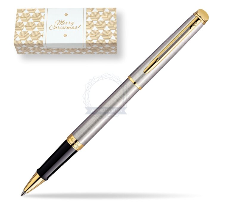 Hémisphère makes each moment refreshingly elegant. In the spirit of Waterman innovation, it redefines timeless lines with a new focus on streamlined simplicity. Striking clean design and noble materials come together for a delightful writing experience to inspire your most creative thoughts. Everything flows from the elegant slim shape. Features a dynamic combination of elements like the slim clip and broad ring, to enhance the distinctively narrow form. Mixing metals for an anytime accessory, brushed solid stainless steel and 23 K golden trims, in a classic composition of smooth discerning style. Stainless steel nib. Hémisphère Stainless Steel GT Rollerball pen is ideal as a gift for everyone on all kinds of occasions like birthdays or as a Waterman Christmas gift. This product is perfect for laser engravings and thats why it’s perfect for all companies who wants to give Waterman gifts for their employees, partners or investors. Once you feel the grace and fluidity in writing of this product you can get Fountain Pen, Mechanical Pencil and Ballpoint matching to the set. This Waterman Rollerball Pen can be refilled with every Waterman rollerball refill. This product can be engraved by laser. This Waterman Rollerball Pen comes with a rollerball refill in random colour Black or blue. Presented in its Waterman gift box.