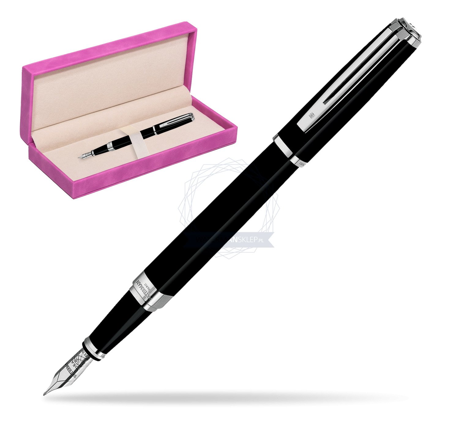 Exception is a phenomenon of technical ingenuity. Conceiving a prestigious pen of this shape to not only look good, work brilliantly, but also feel sublime in the hand, took immense skill. Today, when you write with an Exception, you can feel the inspiration flowing from its charismatic lines. A Waterman masterpiece that echoes the magic of inspiration. Ideas that turn corners, change the rules, break away from expectations... From the graphic purity of the square comes Exception, a precious object of desire by WATERMAN. Powerful presence, subtle finesse and lavish opulence that express incomparable charisma and elegance. The expressive contrast of luxurious silky black lacquer and contemporary silver-plated trims generate a pure modern style. A refined rhodium-plated 18K solid gold nib is the signature symbol of Waterman's the jewel-like charm. Exception Slim Black ST Fountain pen is ideal as a gift for everyone on all kinds of occasions like birthdays or as a Waterman Christmas gift. This product is perfect for all companies who wants to give Waterman’s gifts for their employees, partners or investors. Once you feel the grace and fluidity in writing of this product you can get Rollerball Pen and Ballpoint Pen matching to the set. This Waterman Fountain Pen can be refilled with every Waterman Ink cartridges or by Waterman Ink in bottle. This Waterman Fountain Pen comes with nib size F. Converter and ink cartridge included in random blue or black colour. This product can be engraved by laser. Presented in its Waterman gift box.