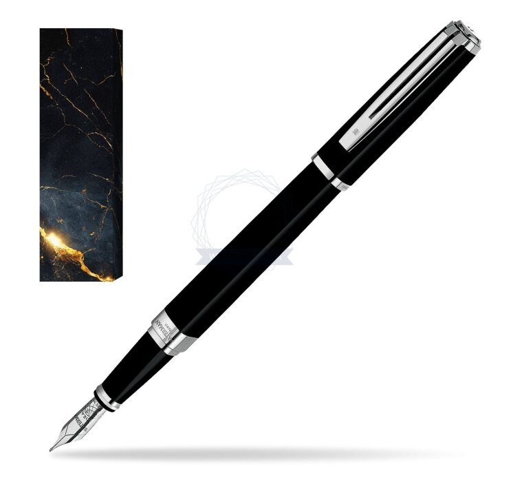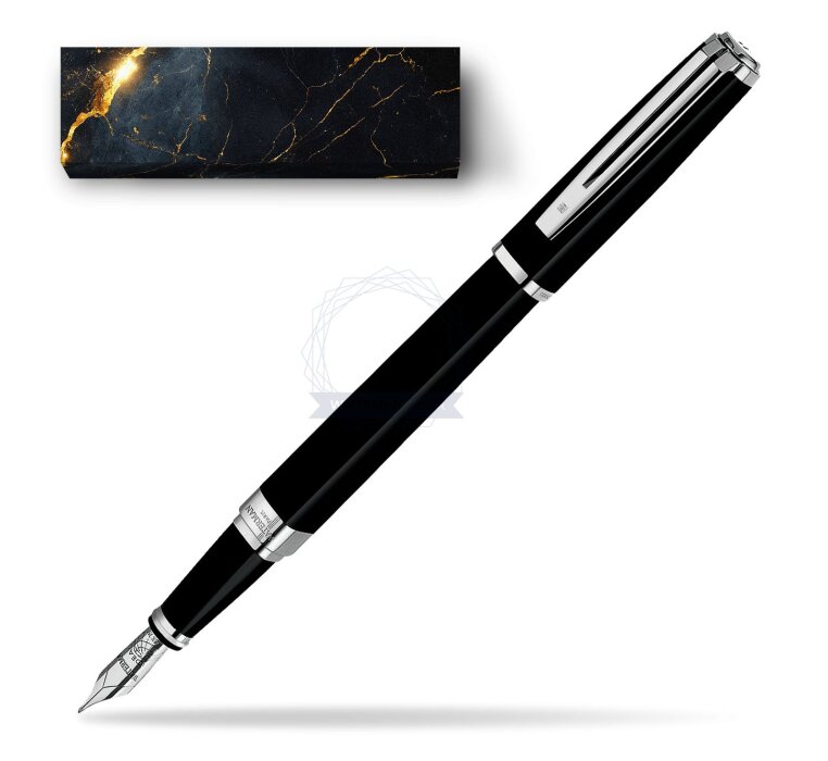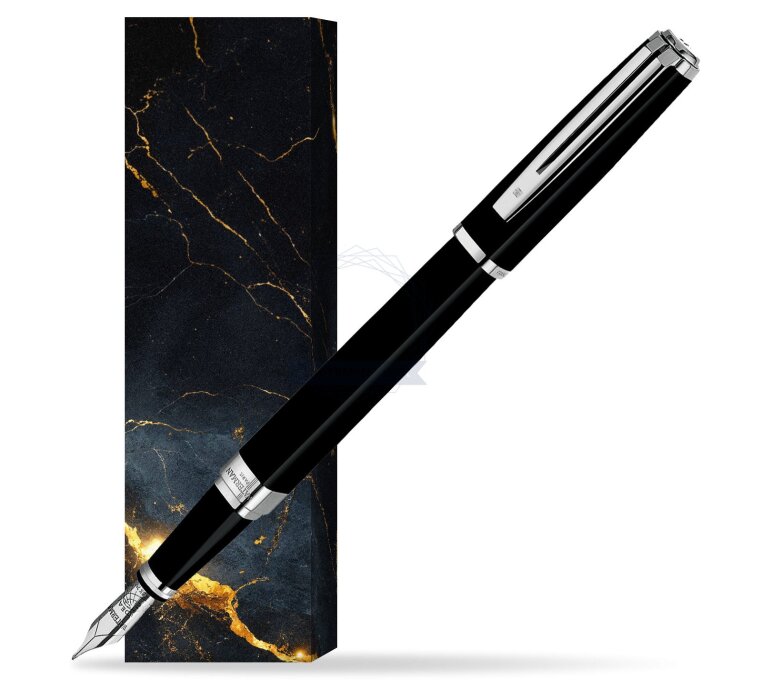 Exception is a phenomenon of technical ingenuity. Conceiving a prestigious pen of this shape to not only look good, work brilliantly, but also feel sublime in the hand, took immense skill. Today, when you write with an Exception, you can feel the inspiration flowing from its charismatic lines. A Waterman masterpiece that echoes the magic of inspiration. Ideas that turn corners, change the rules, break away from expectations... From the graphic purity of the square comes Exception, a precious object of desire by WATERMAN. Powerful presence, subtle finesse and lavish opulence that express incomparable charisma and elegance. The expressive contrast of luxurious silky black lacquer and contemporary silver-plated trims generate a pure modern style. A refined rhodium-plated 18K solid gold nib is the signature symbol of Waterman's the jewel-like charm. Exception Slim Black ST Fountain pen is ideal as a gift for everyone on all kinds of occasions like birthdays or as a Waterman Christmas gift. This product is perfect for all companies who wants to give Waterman’s gifts for their employees, partners or investors. Once you feel the grace and fluidity in writing of this product you can get Rollerball Pen and Ballpoint Pen matching to the set. This Waterman Fountain Pen can be refilled with every Waterman Ink cartridges or by Waterman Ink in bottle. This Waterman Fountain Pen comes with nib size F. Converter and ink cartridge included in random blue or black colour. This product can be engraved by laser. Presented in its Waterman gift box.