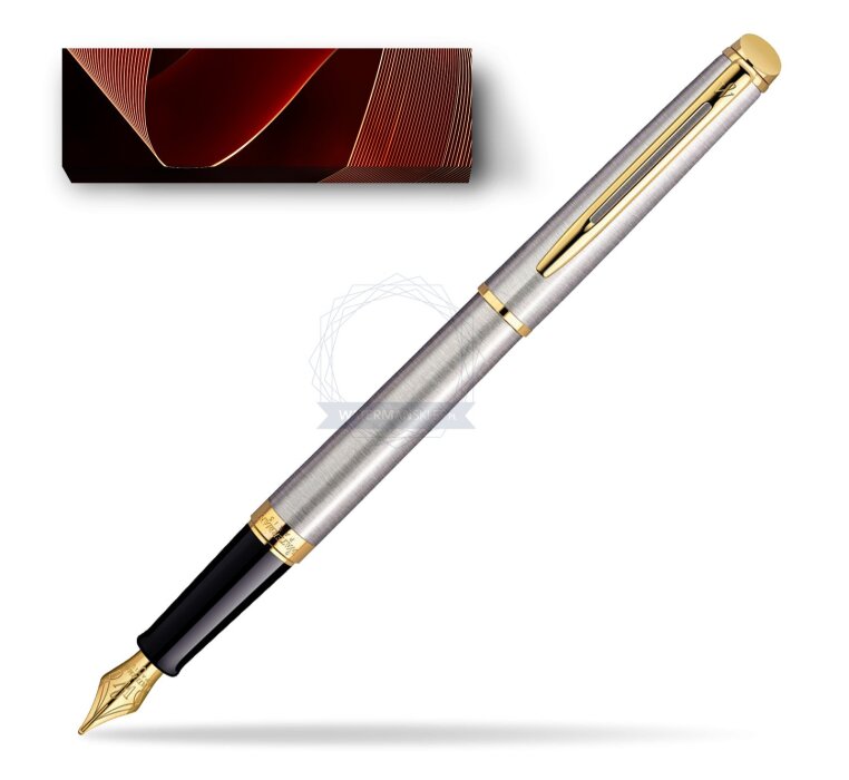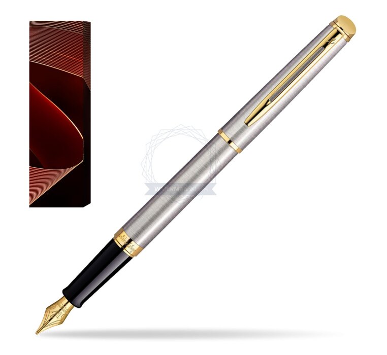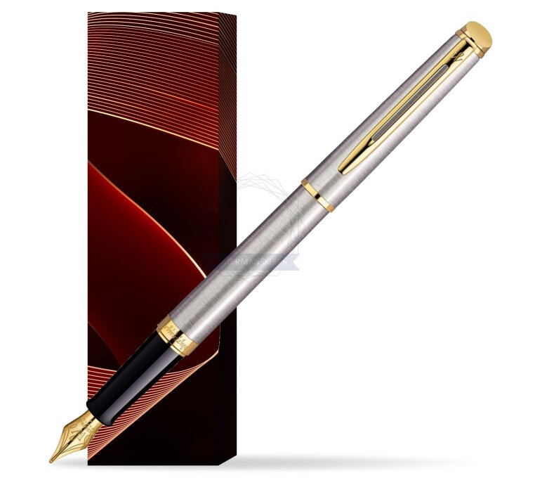 Hémisphère makes each moment refreshingly elegant. In the spirit of Waterman innovation, it redefines timeless lines with a new focus on streamlined simplicity. Striking clean design and noble materials come together for a delightful writing experience to inspire your most creative thoughts. Everything flows from the elegant slim shape. Features a dynamic combination of elements like the slim clip and broad ring, to enhance the distinctively narrow form. Mixing metals for an anytime accessory, brushed solid stainless steel and 23 K golden trims, in a classic composition of smooth discerning style. Comfortable and brilliantly designed, the expertly engraved nib is unmistakable in its writing experience. Hémisphère Stainless Steel GT Fountain pen is ideal as a gift for everyone on all kinds of occasions like birthdays or as a Waterman Christmas gift. This product is perfect for all companies who wants to give Waterman’s gifts for their employees, partners or investors. Once you feel the grace and fluidity in writing of this product you can get Rollerball Pen, Mechanical Pencil and Ballpoint Pen matching to the set. This Waterman Fountain Pen can be refilled with every Waterman Ink cartridges or by Waterman Ink in bottle. This Waterman Fountain Pen comes with nib size F. One ink cartridge included in random blue or black colour. This product can be engraved by laser. Presented in its Waterman gift box.