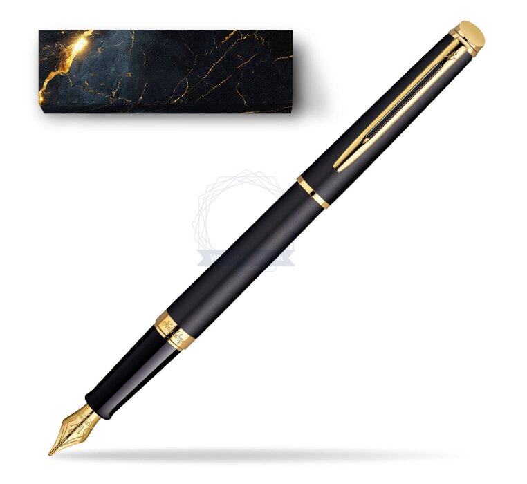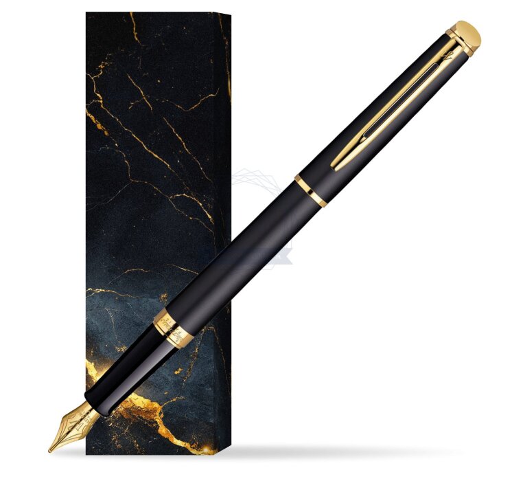Hémisphère makes each moment refreshingly elegant. In the spirit of Waterman innovation, it redefines timeless lines with a new focus on streamlined simplicity. Striking clean design and noble materials come together for a delightful writing experience to inspire your most creative thoughts. Everything flows from the elegant slim shape. Features a dynamic combination of elements like the slim clip and broad ring, to enhance the distinctively narrow form. A satin matt black finish with a touch of sparkling 23K golden trims, gives a tailored, classic finish for a sophisticated statement of style. Comfortable and brilliantly designed, the expertly engraved nib (Stainless steel with fine gold plating) is unmistakable in its writing experience. Hémisphère Matt Black GT Fountain pen is ideal as a gift for everyone on all kinds of occasions like birthdays or as a Waterman Christmas gift. This product is perfect for all companies who wants to give Waterman’s gifts for their employees, partners or investors. Once you feel the grace and fluidity in writing of this product you can get Rollerball Pen, Mechanical Pencil and Ballpoint Pen matching to the set. This Waterman Fountain Pen can be refilled with every Waterman Ink cartridges or by Waterman Ink in bottle. One ink cartridge included in random blue or black colour. This product can be engraved by laser. Presented in its Waterman gift box.
