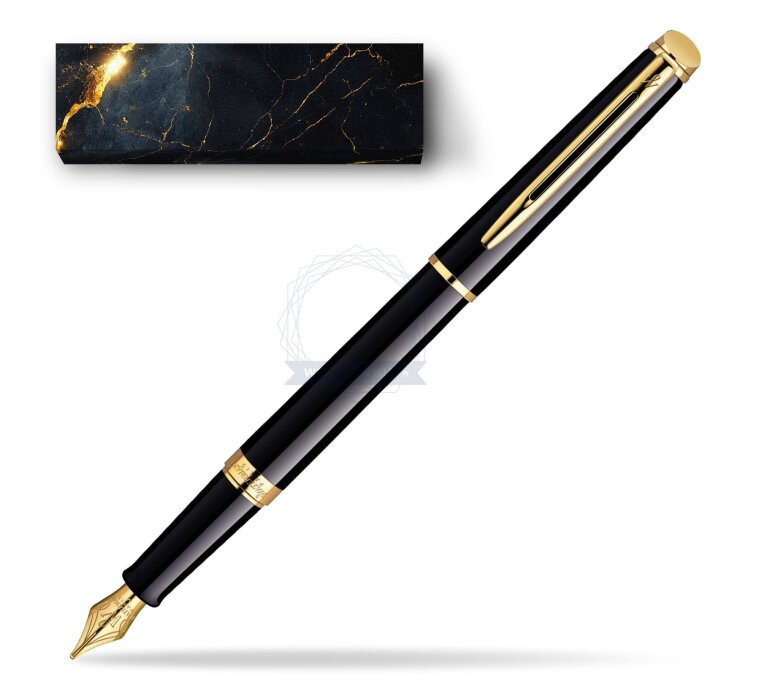 Hémisphère makes each moment refreshingly elegant. In the spirit of Waterman innovation, it redefines timeless lines with a new focus on streamlined simplicity. Striking clean design and noble materials come together for a delightful writing experience to inspire your most creative thoughts. Everything flows from the elegant slim shape. Features a dynamic combination of elements like the slim clip and broad ring, to enhance the distinctively narrow form. A beautiful basic with a brilliant shine, the black and gold duo in superior smooth lacquer and valuable 23K golden trims is timeless in its simplicity. Comfortable and brilliantly designed, the expertly engraved nib (Stainless steel with fine gold plating) is unmistakable in its writing experience. Hémisphère Black GT Fountain pen is ideal as a gift for everyone on all kinds of occasions like birthdays or as a Waterman Christmas gift. This product is perfect for all companies who wants to give Waterman’s gifts for their employees, partners or investors. Once you feel the grace and fluidity in writing of this product you can get Rollerball Pen, Mechanical Pencil and Ballpoint Pen matching to the set. This Waterman Fountain Pen can be refilled with every Waterman Ink cartridges or by Waterman Ink in bottle. One ink cartridge included in random blue or black colour. This product can be engraved by laser. Presented in its Waterman gift box.