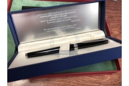 Hémisphère makes each moment refreshingly elegant. In the spirit of Waterman innovation, it redefines timeless lines with a new focus on streamlined simplicity. Striking clean design and noble materials come together for a delightful writing experience to inspire your most creative thoughts. Everything flows from the elegant slim shape. Features a dynamic combination of elements like the slim clip and broad ring, to enhance the distinctively narrow form. Indulge in exquisite refinement and effortless sophistication with the refined, rippled strokes of this iconic palladium plated chiselled wave design. Comfortable and brilliantly designed, the expertly engraved nib (Stainless steel) is unmistakable in its writing experience. Hémisphère Black CT Fountain pen is ideal as a gift for everyone on all kinds of occasions like birthdays or as a Waterman Christmas gift. This product is perfect for all companies who wants to give Waterman’s gifts for their employees, partners or investors. Once you feel the grace and fluidity in writing of this product you can get Rollerball Pen, Mechanical Pencil and Ballpoint Pen matching to the set. This Waterman Fountain Pen can be refilled with every Waterman Ink cartridges or by Waterman Ink in bottle. This Waterman Fountain Pen comes with nib size F. One ink cartridge included in random blue or black colour. This product can be engraved by laser.