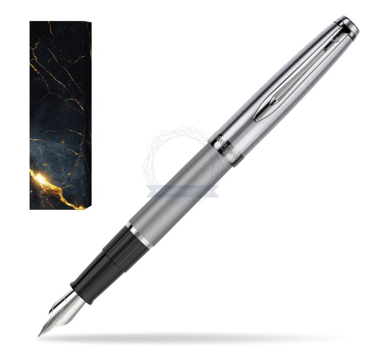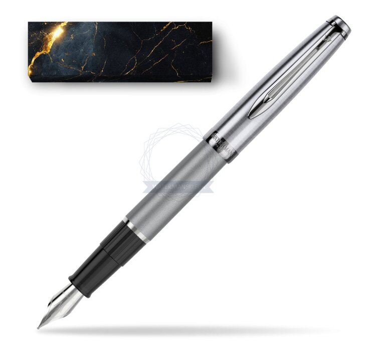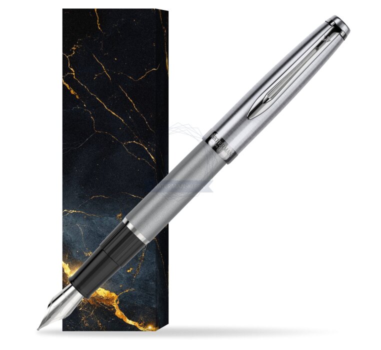 For the first time in many years, Waterman introduces a completely new line. Embleme is a collection based and inspired by Paris - a city inseparably associated with just Waterman products. The entire collection is a reference to the casual style of Paris. Our latest collection embodies this Parisian style with its timeless expression of taste and confidence. Pens and pens designed to perfectly fit the hand of the writer. They were created for those stationery users who value high quality products and original appearance and colors. Emblème is the only Waterman brand line that offers a metal cap for the entire product range. The inspiration for the creation of this fountain pen is free style, Parisian style in fashion. The product loosely refers to the fashion icon, Coco Chanel, which values the timeless quality of classic designs. The Embleme fountain pen holds perfectly in your hand. The tip is made of stainless steel, brushing across the tip adds a chic. Chrome finishes. Premium resin body in metallic gray color. The front section is made of plastic. Stainless steel nib.