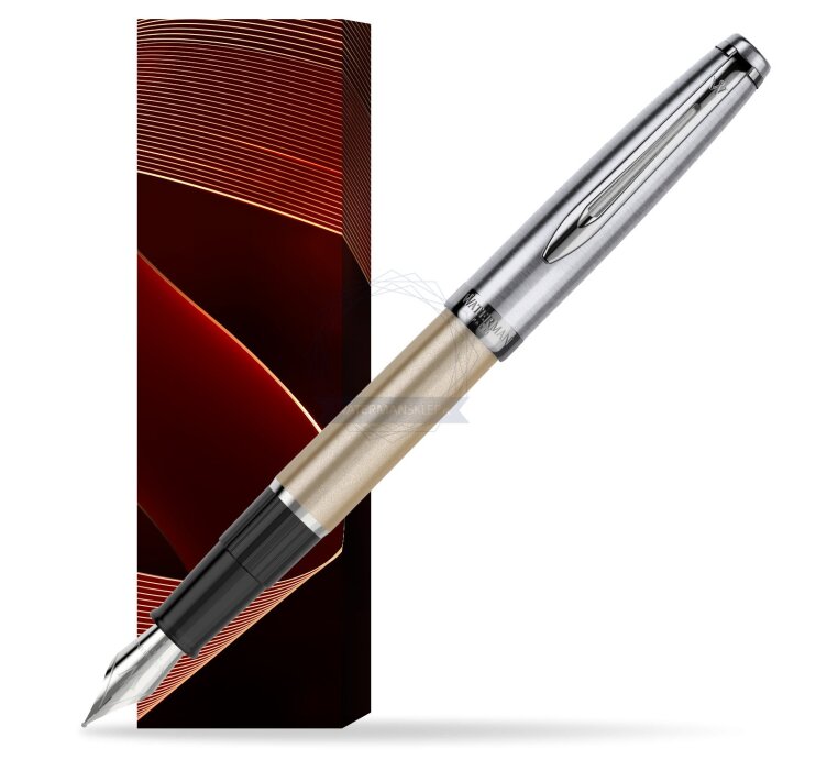 For the first time in many years, Waterman introduces a completely new line. Embleme is a collection based and inspired by Paris - a city inseparably associated with just Waterman products. The entire collection is a reference to the casual style of Paris. Our latest collection embodies this Parisian style with its timeless expression of taste and confidence. Pens and pens designed to perfectly fit the hand of the writer. They were created for those stationery users who value high quality products and original appearance and colors. Emblème is the only Waterman brand line that offers a metal cap for the entire product range. The inspiration for the creation of this fountain pen is free style, Parisian style in fashion. The product loosely refers to the fashion icon, Coco Chanel, which values the timeless quality of classic designs. The Embleme fountain pen holds perfectly in your hand. The tip is made of stainless steel, brushing across the tip adds a chic. Chrome finishes. Premium resin body in metallic gold color. The front section is made of plastic. Stainless steel nib.