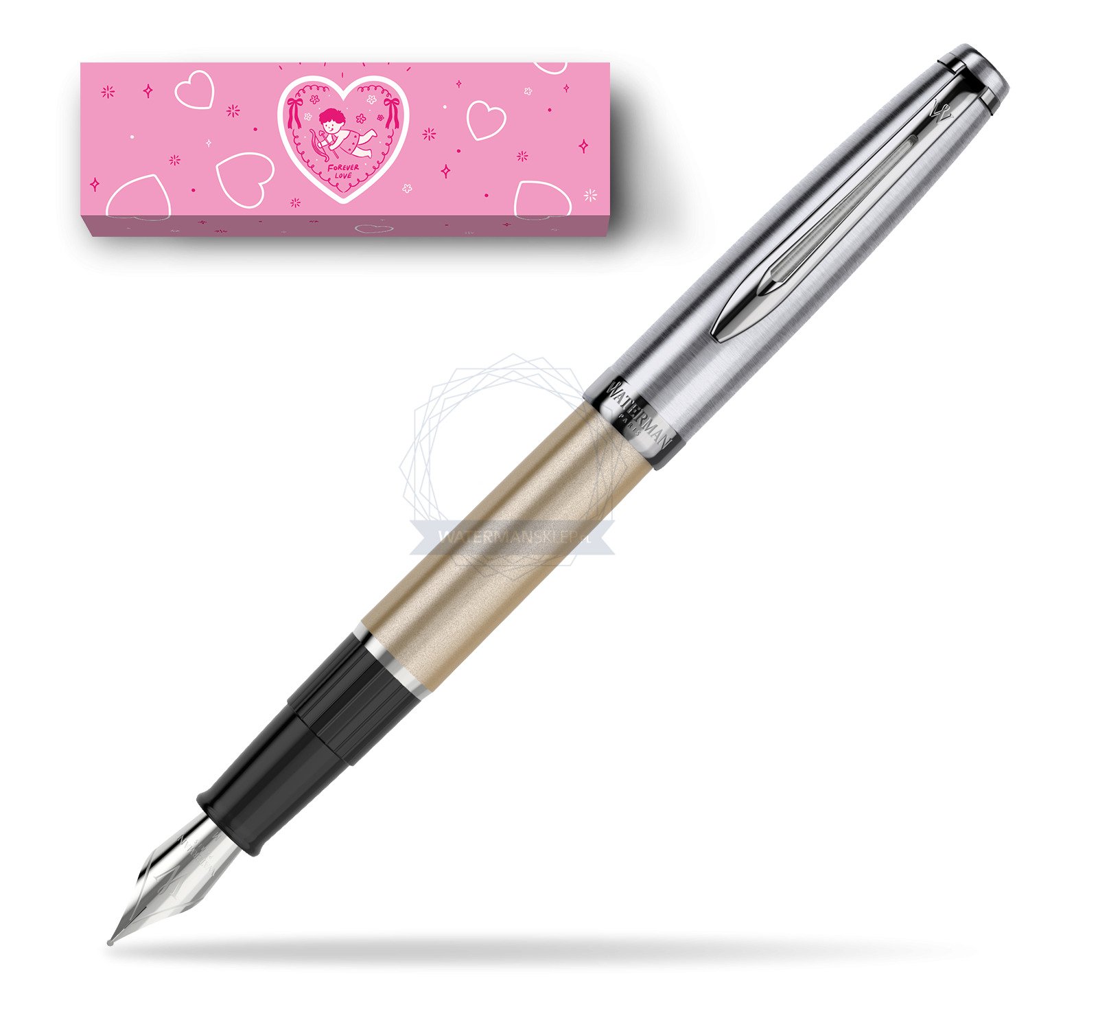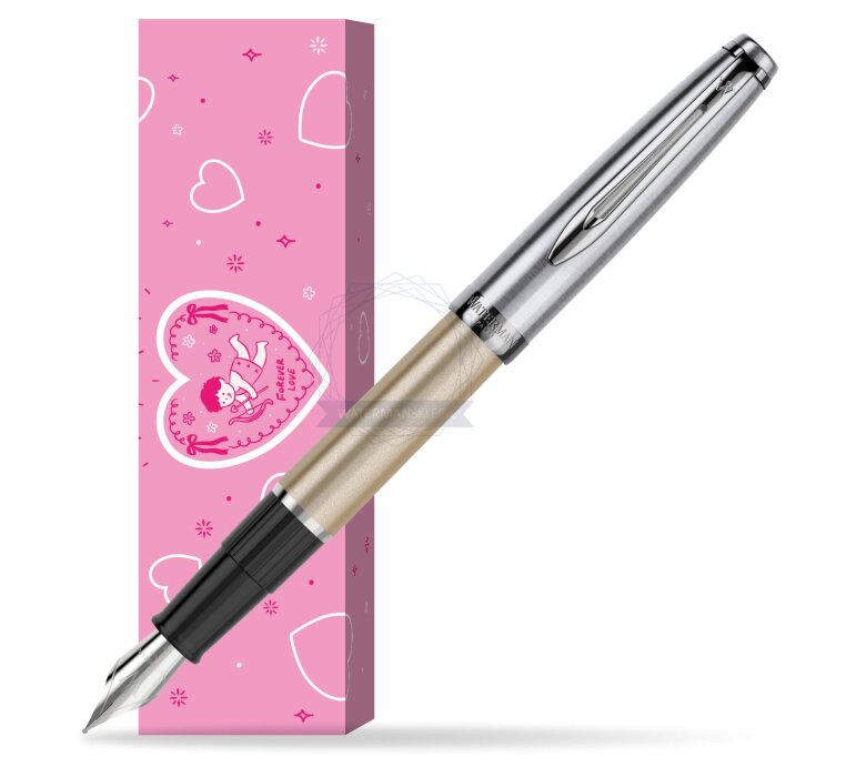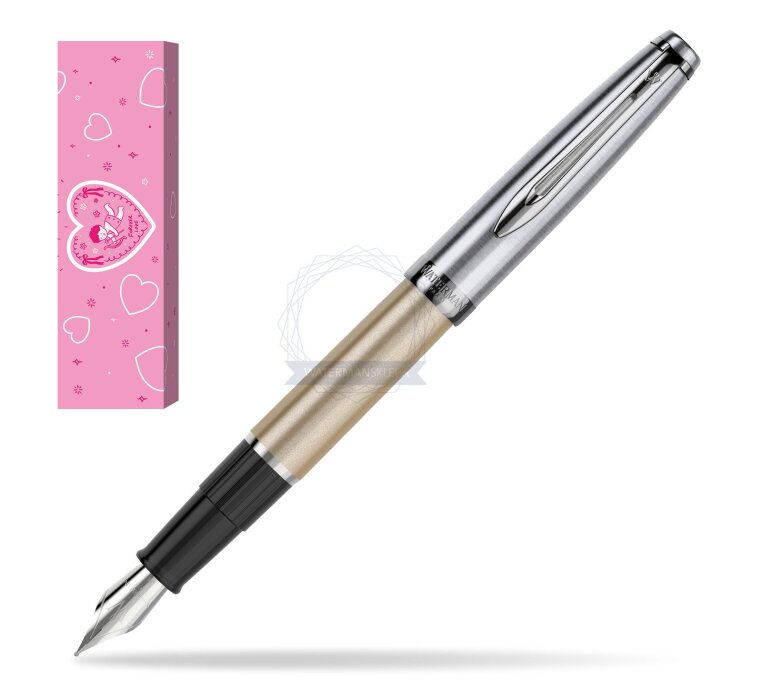 For the first time in many years, Waterman introduces a completely new line. Embleme is a collection based and inspired by Paris - a city inseparably associated with just Waterman products. The entire collection is a reference to the casual style of Paris. Our latest collection embodies this Parisian style with its timeless expression of taste and confidence. Pens and pens designed to perfectly fit the hand of the writer. They were created for those stationery users who value high quality products and original appearance and colors. Emblème is the only Waterman brand line that offers a metal cap for the entire product range. The inspiration for the creation of this fountain pen is free style, Parisian style in fashion. The product loosely refers to the fashion icon, Coco Chanel, which values the timeless quality of classic designs. The Embleme fountain pen holds perfectly in your hand. The tip is made of stainless steel, brushing across the tip adds a chic. Chrome finishes. Premium resin body in metallic gold color. The front section is made of plastic. Stainless steel nib.
