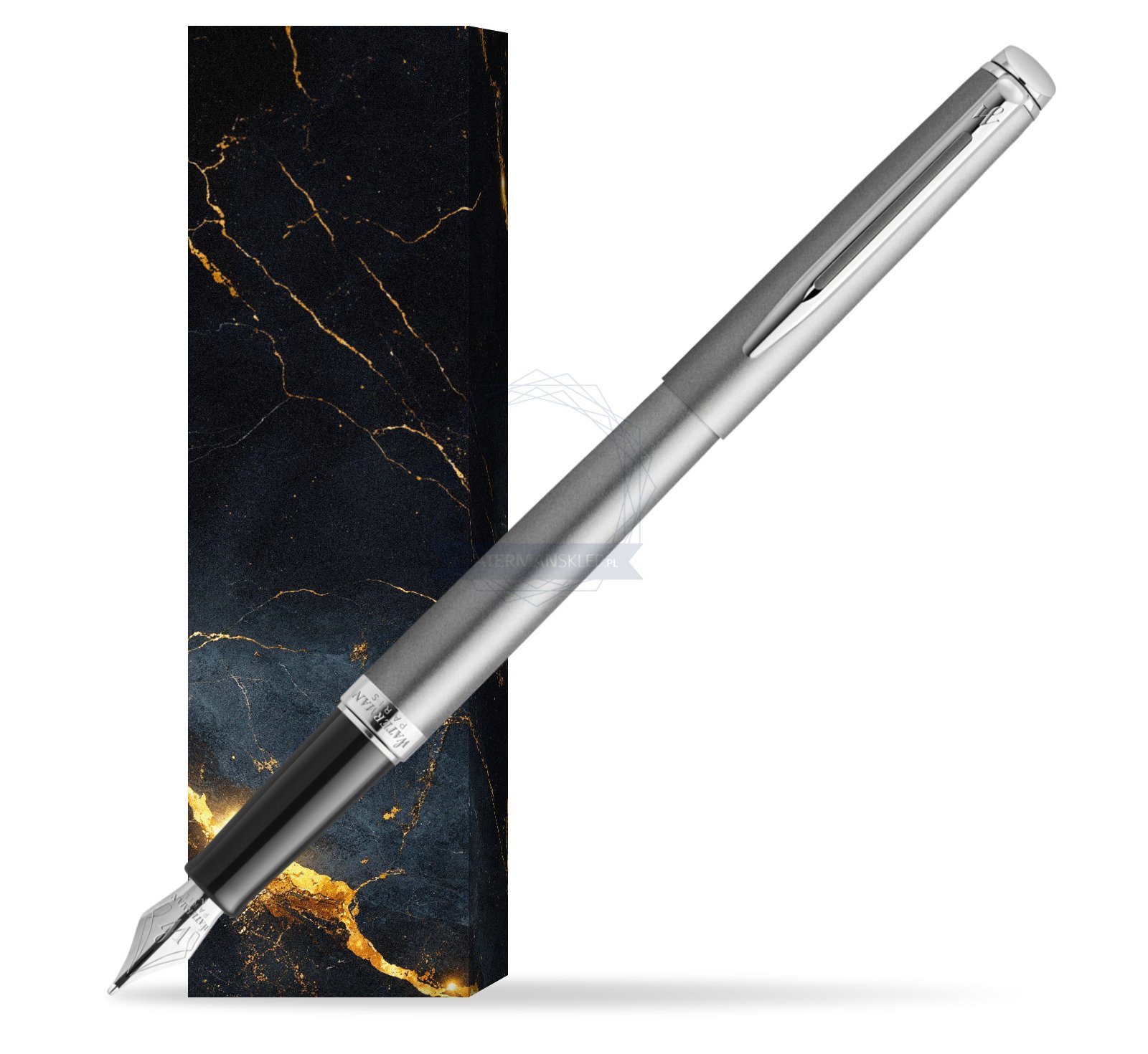 Eye-catching with dynamic, streamlined and elegant shape Waterman Hémisphère Fountain Pen offers ideal balance between comfort of light pen and its style, which lets distinguish your writing. Every fountain pen was meticulously designed with usage of lively colour range, beautiful lacquers and fashionable patterns inspired by impressive, parisian style. Precisely shaped nib with smooth surface and coherent form characterized by diligent workmanship, which lets you spill your character on paper with every stroke of the pen. Real luxury model - made in France and offered in elegant Waterman gift box.