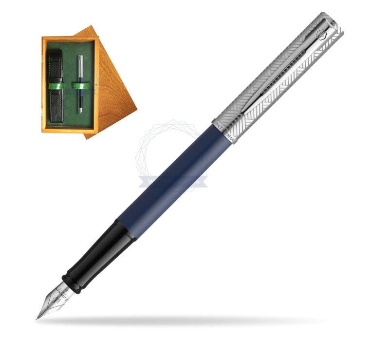For the Allure Deluxe fountain pen, inspiration has come from some of the iconic places that define Paris. Finished in a deep matte blue lacquer with a signature double-branched clip, it features a stunning etched cap with a repeating triangular motif that references the contemporary architecture of one of the city’s most famous attractions. Made entirely in France, benefitting from Waterman’s in house craftsmanship and over 130 years of experience, the fountain pen features an engraved nib with the Waterman emblem. Presented in a dark blue gift box with a 2-year international warranty.