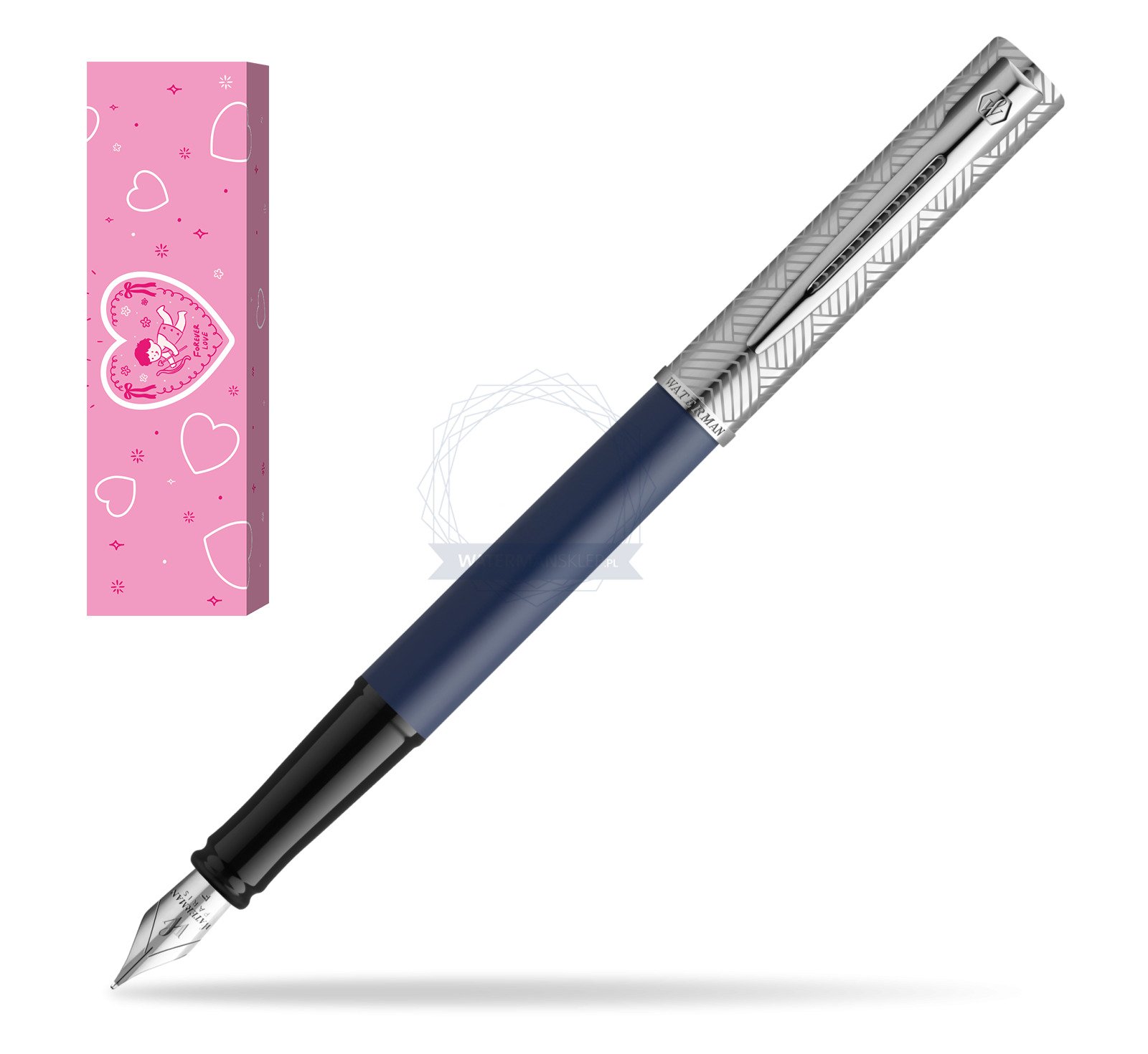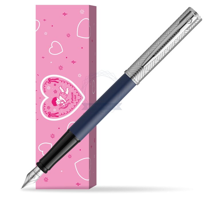 For the Allure Deluxe fountain pen, inspiration has come from some of the iconic places that define Paris. Finished in a deep matte blue lacquer with a signature double-branched clip, it features a stunning etched cap with a repeating triangular motif that references the contemporary architecture of one of the city’s most famous attractions. Made entirely in France, benefitting from Waterman’s in house craftsmanship and over 130 years of experience, the fountain pen features an engraved nib with the Waterman emblem. Presented in a dark blue gift box with a 2-year international warranty.