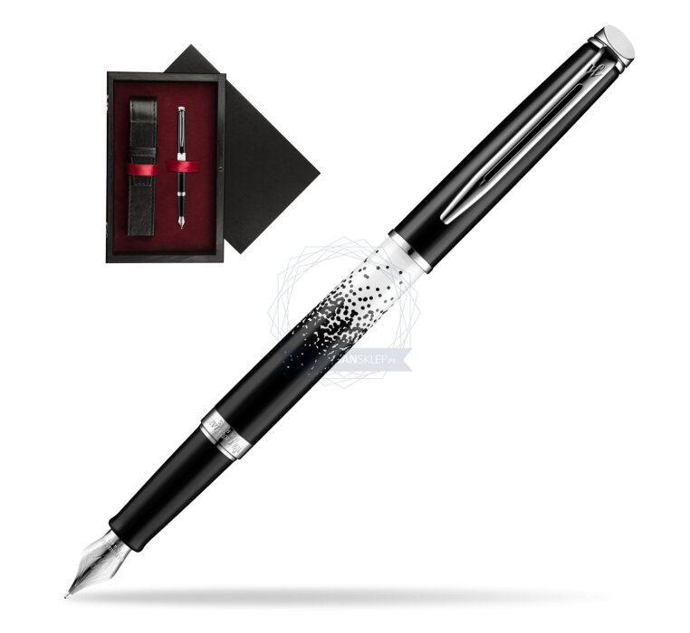The vibrant black and white designs of the Ombres et Lumières Collection take inspiration from the mesmerising lights of Paris by night. The must have collection of 2015 that proudly expresses sophisticated style and timeless Parisian chicness. Hémisphère makes each moment refreshingly elegant. In the spirit of Waterman innovation, it redefines timeless lines with a new focus on streamlined simplicity. Striking clean design and noble materials come together for a delightful writing experience to inspire your most creative thoughts. A hypnotic and graphic pattern captures the timeless elegance of the black & white duo with high gloss lacquer and luminescent silk screen designs. Comfortable and brilliantly designed, the expertly engraved nib is unmistakable in its writing experience. Hemisphere Ombres & Lumieres CT Fountain pen is ideal as a gift for everyone on all kinds of occasions like birthdays or as a Waterman Christmas gift. This product is perfect for all companies who wants to give Waterman’s gifts for their employees, partners or investors. Once you feel the grace and fluidity in writing of this product you can get Rollerball Pen and Ballpoint matching to the set. This Waterman Fountain Pen can be refilled with every Waterman Ink cartridges or by Waterman Ink in bottle. This product can be engraved by laser. This Waterman Fountain Pen comes with nib size F. One ink cartridge included in random blue or black colour. Presented in its Waterman gift box.