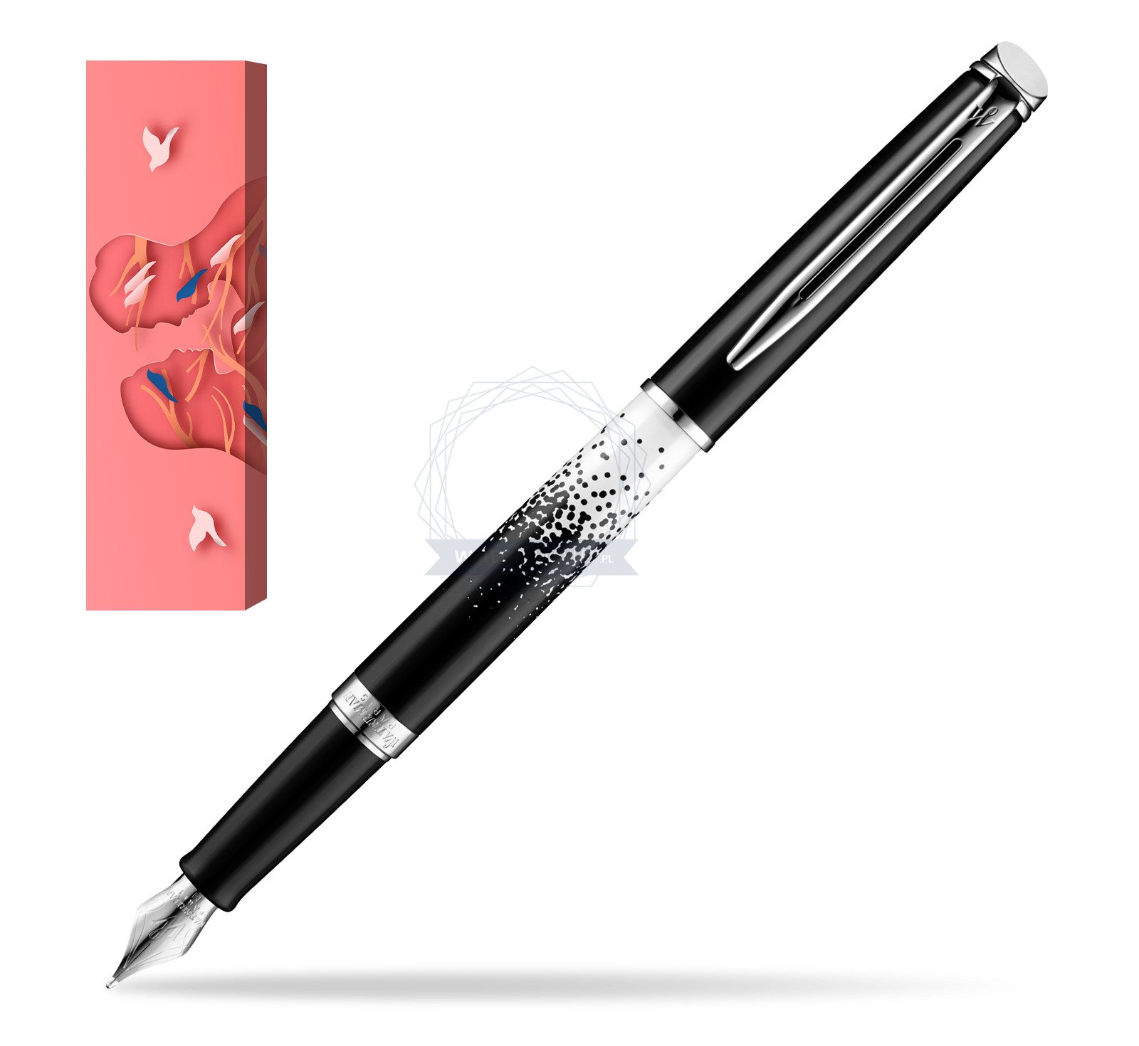 The vibrant black and white designs of the Ombres et Lumières Collection take inspiration from the mesmerising lights of Paris by night. The must have collection of 2015 that proudly expresses sophisticated style and timeless Parisian chicness. Hémisphère makes each moment refreshingly elegant. In the spirit of Waterman innovation, it redefines timeless lines with a new focus on streamlined simplicity. Striking clean design and noble materials come together for a delightful writing experience to inspire your most creative thoughts. A hypnotic and graphic pattern captures the timeless elegance of the black & white duo with high gloss lacquer and luminescent silk screen designs. Comfortable and brilliantly designed, the expertly engraved nib is unmistakable in its writing experience. Hemisphere Ombres & Lumieres CT Fountain pen is ideal as a gift for everyone on all kinds of occasions like birthdays or as a Waterman Christmas gift. This product is perfect for all companies who wants to give Waterman’s gifts for their employees, partners or investors. Once you feel the grace and fluidity in writing of this product you can get Rollerball Pen and Ballpoint matching to the set. This Waterman Fountain Pen can be refilled with every Waterman Ink cartridges or by Waterman Ink in bottle. This product can be engraved by laser. This Waterman Fountain Pen comes with nib size F. One ink cartridge included in random blue or black colour. Presented in its Waterman gift box.