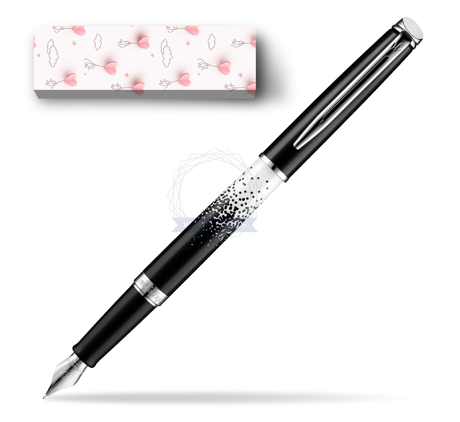 The vibrant black and white designs of the Ombres et Lumières Collection take inspiration from the mesmerising lights of Paris by night. The must have collection of 2015 that proudly expresses sophisticated style and timeless Parisian chicness. Hémisphère makes each moment refreshingly elegant. In the spirit of Waterman innovation, it redefines timeless lines with a new focus on streamlined simplicity. Striking clean design and noble materials come together for a delightful writing experience to inspire your most creative thoughts. A hypnotic and graphic pattern captures the timeless elegance of the black & white duo with high gloss lacquer and luminescent silk screen designs. Comfortable and brilliantly designed, the expertly engraved nib is unmistakable in its writing experience. Hemisphere Ombres & Lumieres CT Fountain pen is ideal as a gift for everyone on all kinds of occasions like birthdays or as a Waterman Christmas gift. This product is perfect for all companies who wants to give Waterman’s gifts for their employees, partners or investors. Once you feel the grace and fluidity in writing of this product you can get Rollerball Pen and Ballpoint matching to the set. This Waterman Fountain Pen can be refilled with every Waterman Ink cartridges or by Waterman Ink in bottle. This product can be engraved by laser. This Waterman Fountain Pen comes with nib size F. One ink cartridge included in random blue or black colour. Presented in its Waterman gift box.