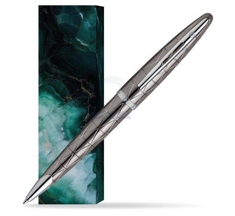 Carène rides the crest of the innovation wave. Taking inspiration from luxury boat design, the result is our most distinguished example of pioneering vision. Crafted in noble materials, with an artist’s attention to detail, its pure fluid curves conjure up the sleekest lines of a leisure cruiser, or the billowing sails of a luxury yacht. Set sail for the adventure of a lifetime. The streamlined silhouette reflects a determination to achieve absolute purity, notably in the sublimely integrated nib of the fountain pen version. A powerful silhouette of graphic engraved black PVD with black lacquer and palladium plated trims, creates a striking contrast of pure sophistication. 18K solid gold (rhodium-plated) nib. Carène Contemporary Gunmetal ST Ballpoint pen is ideal as a gift for everyone on all kinds of occasions like birthdays or as a Waterman Christmas gift. This product is perfect for all companies who wants to give Waterman gifts for their employees, partners or investors. Once you feel the grace and fluidity in writing of this product you can get Fountain Pen matching to the set. This Waterman Ballpoint Pen can be refilled with every Waterman Ballpoint refill. This Waterman Ballpoint Pen comes with a Ballpoint refill in random colour Black or blue. Presented in its Waterman gift box.