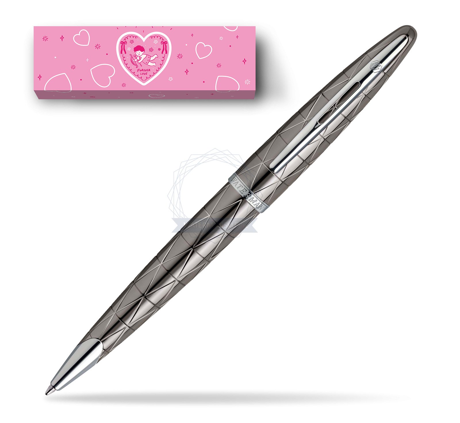 Carène rides the crest of the innovation wave. Taking inspiration from luxury boat design, the result is our most distinguished example of pioneering vision. Crafted in noble materials, with an artist’s attention to detail, its pure fluid curves conjure up the sleekest lines of a leisure cruiser, or the billowing sails of a luxury yacht. Set sail for the adventure of a lifetime. The streamlined silhouette reflects a determination to achieve absolute purity, notably in the sublimely integrated nib of the fountain pen version. A powerful silhouette of graphic engraved black PVD with black lacquer and palladium plated trims, creates a striking contrast of pure sophistication. 18K solid gold (rhodium-plated) nib. Carène Contemporary Gunmetal ST Ballpoint pen is ideal as a gift for everyone on all kinds of occasions like birthdays or as a Waterman Christmas gift. This product is perfect for all companies who wants to give Waterman gifts for their employees, partners or investors. Once you feel the grace and fluidity in writing of this product you can get Fountain Pen matching to the set. This Waterman Ballpoint Pen can be refilled with every Waterman Ballpoint refill. This Waterman Ballpoint Pen comes with a Ballpoint refill in random colour Black or blue. Presented in its Waterman gift box.