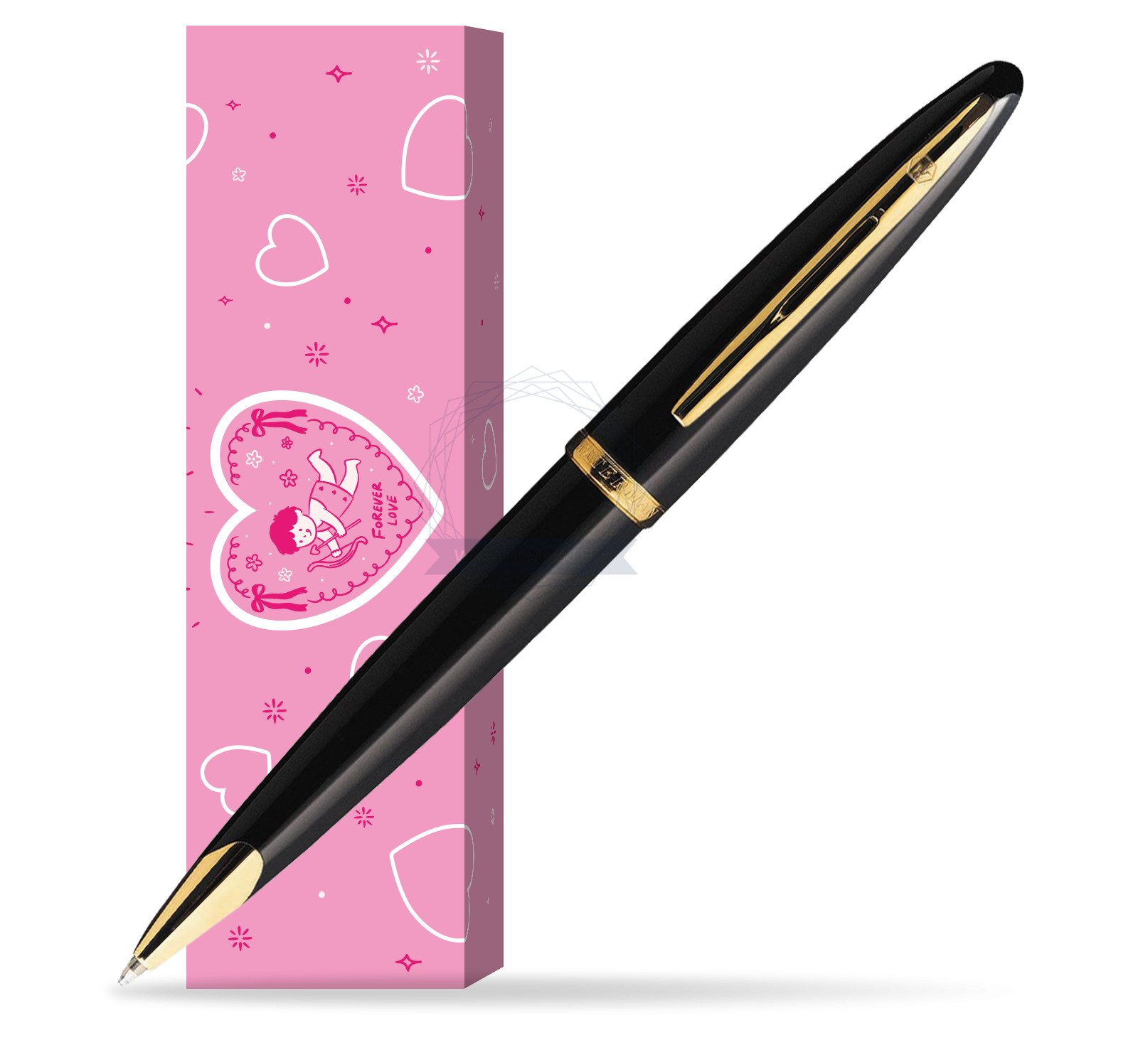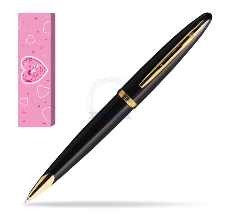 Carène rides the crest of the innovation wave. Taking inspiration from luxury boat design, the result is our most distinguished example of pioneering vision. Crafted in noble materials, with an artist’s attention to detail, its pure fluid curves conjure up the sleekest lines of a leisure cruiser, or the billowing sails of a luxury yacht. Set sail for the adventure of a lifetime. The streamlined silhouette reflects a determination to achieve absolute purity, notably in the sublimely integrated nib of the fountain pen version. A striking combination of high-gloss black lacquer and rich 24K golden trims produces the classic expression of refined sophistication. 18K solid gold nib. Carène Black Sea GT Ballpoint pen is ideal as a gift for everyone on all kinds of occasions like birthdays or as a Waterman Christmas gift. This product is perfect for all companies who wants to give Waterman gifts for their employees, partners or investors. Once you feel the grace and fluidity in writing of this product you can get Fountain Pen and Rollerball Pen matching to the set. This Waterman Ballpoint Pen can be refilled with every Waterman Ballpoint refill. This product can be engraved by laser. This Waterman Ballpoint Pen comes with a Ballpoint refill in random colour Black or blue. Presented in its Waterman gift box.