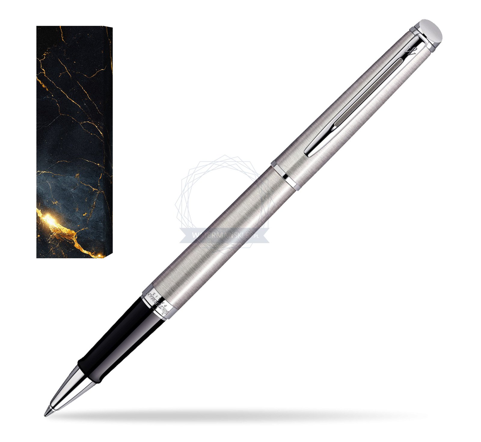 Hémisphère makes each moment refreshingly elegant. In the spirit of Waterman innovation, it redefines timeless lines with a new focus on streamlined simplicity. Striking clean design and noble materials come together for a delightful writing experience to inspire your most creative thoughts. Everything flows from the elegant slim shape. Features a dynamic combination of elements like the slim clip and broad ring, to enhance the distinctively narrow form. Contemporary brushed stainless steel and vivid palladium plated trims, highlight the slim and smooth-touch finish with the cool, clear colour of ice. Stainless steel nib. Hémisphère Stainless Steel CT Rollerball pen is ideal as a gift for everyone on all kinds of occasions like birthdays or as a Waterman Christmas gift. This product is perfect for laser engravings and thats why it’s perfect for all companies who wants to give Waterman gifts for their employees, partners or investors. Once you feel the grace and fluidity in writing of this product you can get Fountain Pen, Mechanical Pencil and Ballpoint matching to the set. This Waterman Rollerball Pen can be refilled with every Waterman rollerball refill. This product can be engraved by laser. This Waterman Rollerball Pen comes with a rollerball refill in random colour Black or blue. Presented in its Waterman gift box.