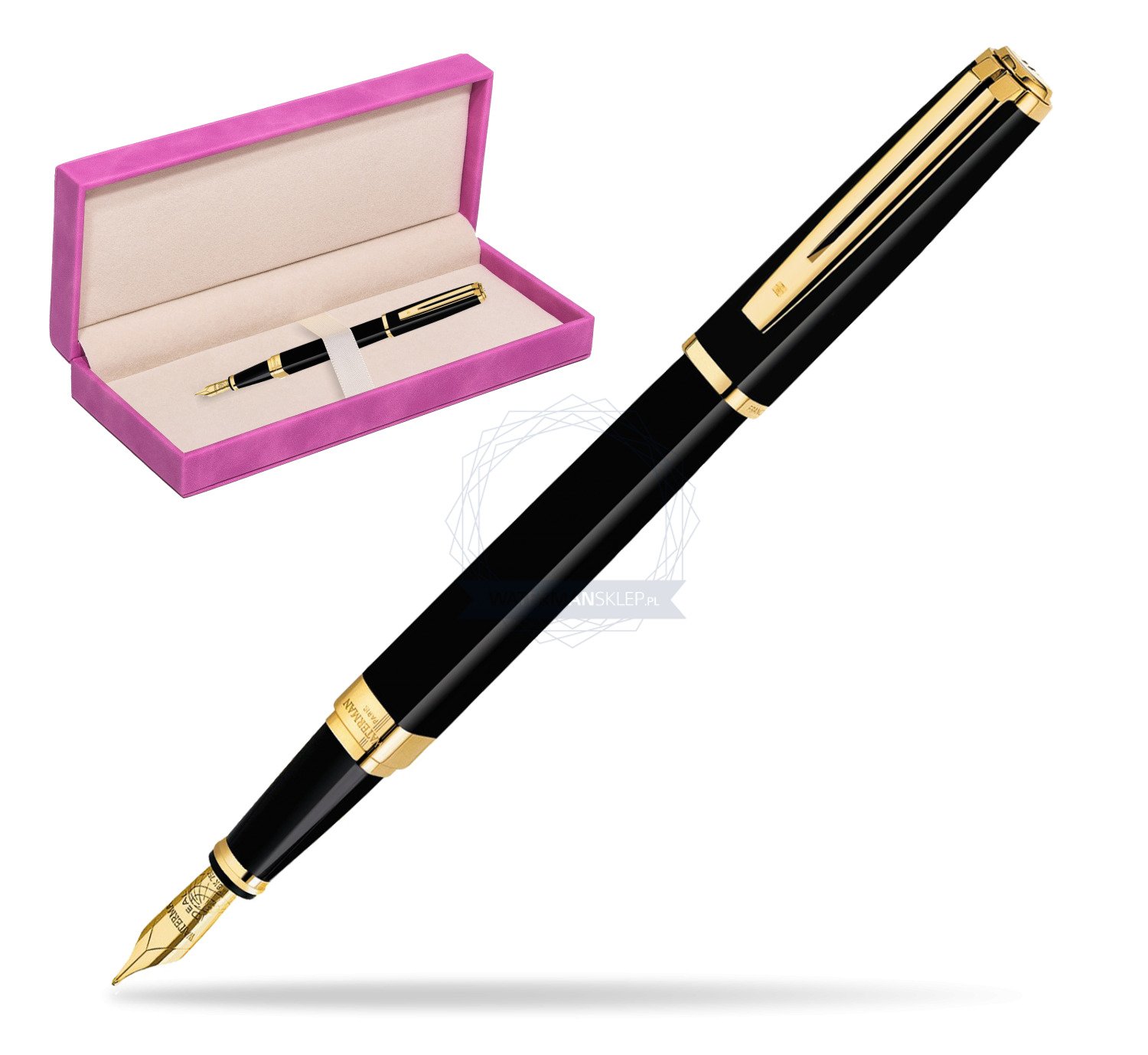 Exception is a phenomenon of technical ingenuity. Conceiving a prestigious pen of this shape to not only look good, work brilliantly, but also feel sublime in the hand, took immense skill. Today, when you write with an Exception, you can feel the inspiration flowing from its charismatic lines. A Waterman masterpiece that echoes the magic of inspiration. Ideas that turn corners, change the rules, break away from expectations... From the graphic purity of the square comes Exception, a precious object of desire by WATERMAN. Powerful presence, subtle finesse and lavish opulence that express incomparable charisma and elegance. A striking combination of rich black lacquer and fine gold-plated trims distinguish this refined modern classic. A refined rhodium-plated 18K solid gold nib is the signature symbol of Waterman's the jewel-like charm. Exception Slim Black GT Fountain pen is ideal as a gift for everyone on all kinds of occasions like birthdays or as a Waterman Christmas gift. This product is perfect for all companies who wants to give Waterman’s gifts for their employees, partners or investors. Once you feel the grace and fluidity in writing of this product you can get Rollerball Pen and Ballpoint Pen matching to the set. This Waterman Fountain Pen can be refilled with every Waterman Ink cartridges or by Waterman Ink in bottle. This Waterman Fountain Pen comes with nib size F. Converter and ink cartridge included in random blue or black colour. This product can be engraved by laser. Presented in its Waterman gift box.