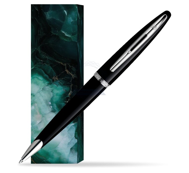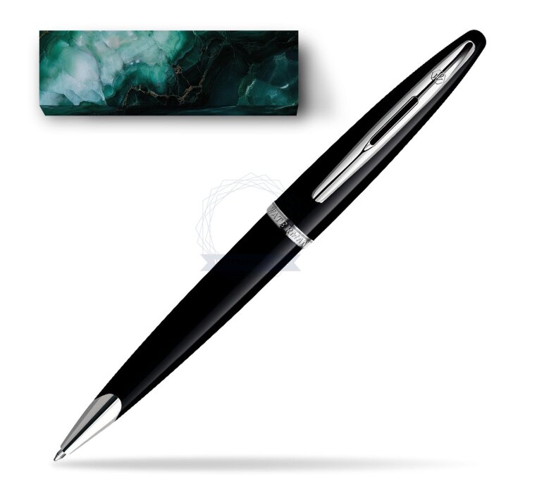 Carène rides the crest of the innovation wave. Taking inspiration from luxury boat design, the result is our most distinguished example of pioneering vision. Crafted in noble materials, with an artist’s attention to detail, its pure fluid curves conjure up the sleekest lines of a leisure cruiser, or the billowing sails of a luxury yacht. Set sail for the adventure of a lifetime. The streamlined silhouette reflects a determination to achieve absolute purity, notably in the sublimely integrated nib of the fountain pen version. Layers of glossy black lacquer and luminous palladium-plated trims bring a stylish touch of modernity to a truly timeless design. 18K solid gold (rhodium-plated) nib. Carène Black Sea ST Ballpoint pen is ideal as a gift for everyone on all kinds of occasions like birthdays or as a Waterman Christmas gift. This product is perfect for all companies who wants to give Waterman gifts for their employees, partners or investors. Once you feel the grace and fluidity in writing of this product you can get Fountain Pen and Rollerball Pen matching to the set. This Waterman Ballpoint Pen can be refilled with every Waterman Ballpoint refill. This product can be engraved by laser. This Waterman Ballpoint Pen comes with a Ballpoint refill in random colour Black or blue. Presented in its Waterman gift box.