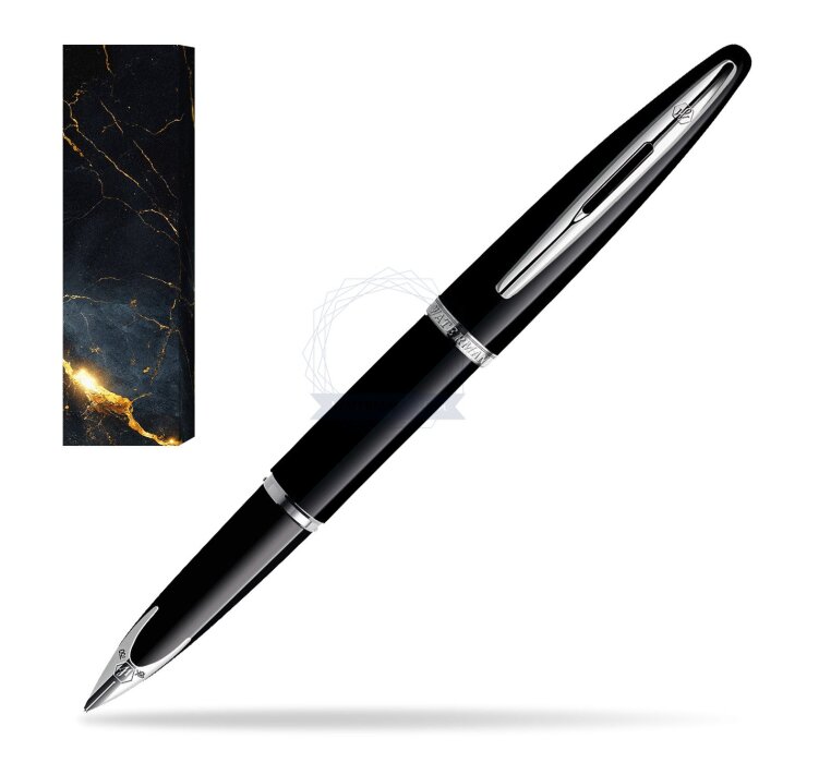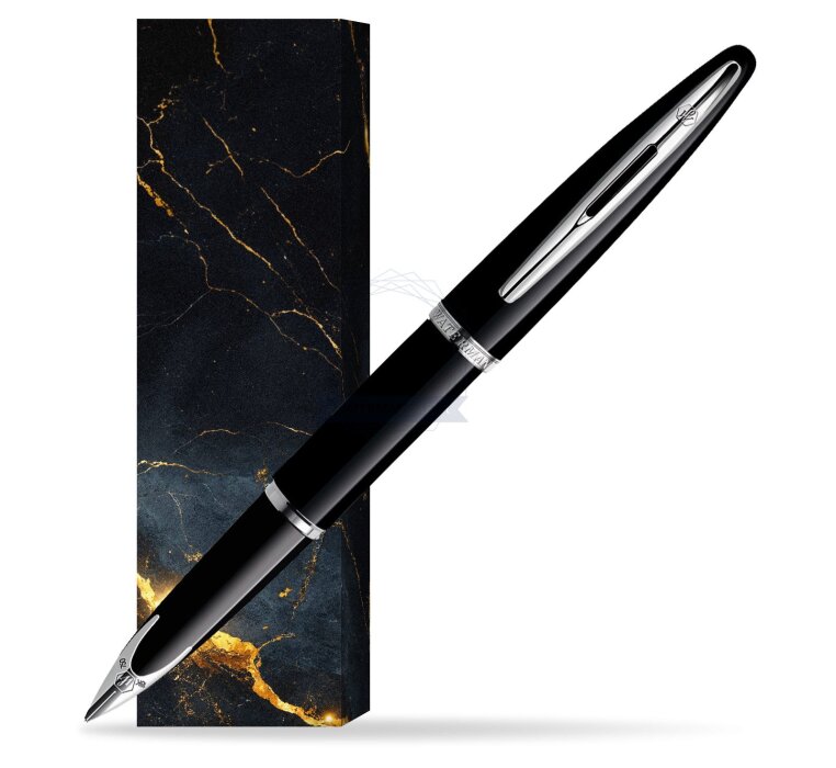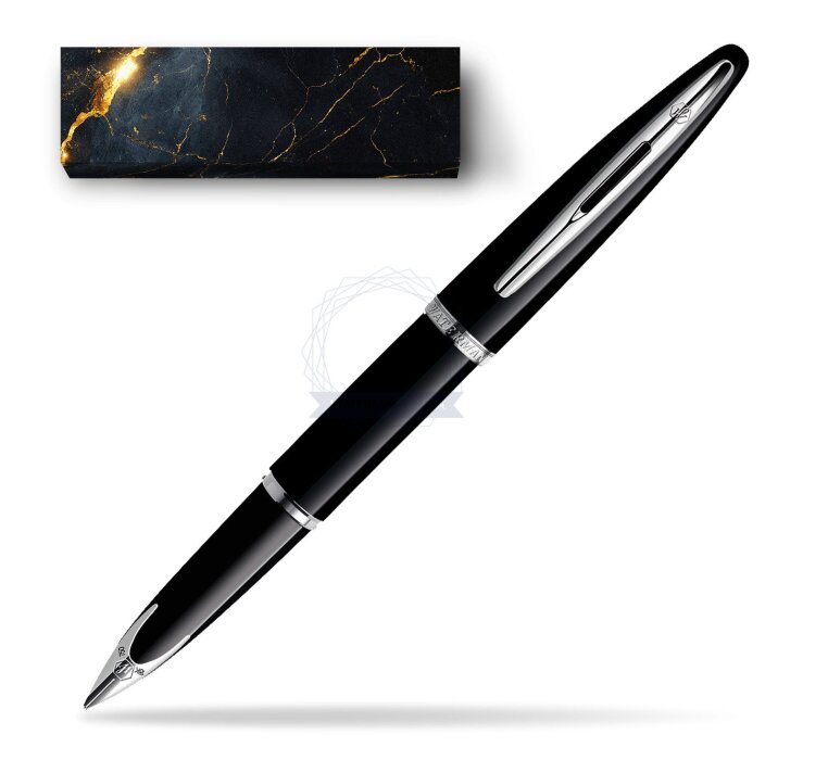 Carène rides the crest of the innovation wave. Taking inspiration from luxury boat design, the result is our most distinguished example of pioneering vision. Crafted in noble materials, with an artist’s attention to detail, its pure fluid curves conjure up the sleekest lines of a leisure cruiser, or the billowing sails of a luxury yacht. Set sail for the adventure of a lifetime. The streamlined silhouette reflects a determination to achieve absolute purity, notably in the sublimely integrated nib of the fountain pen version. Layers of glossy black lacquer and luminous palladium-plated trims bring a stylish touch of modernity to a truly timeless design. Like a plunging bow navigating the infinite possibilities of a pure white page, this rhodium-plated 18K solid gold nib is a unique WATERMAN design. Carène Black Sea ST Fountain pen is ideal as a gift for everyone on all kinds of occasions like birthdays or as a Waterman Christmas gift. This product is perfect for all companies who wants to give Waterman’s gifts for their employees, partners or investors. Once you feel the grace and fluidity in writing of this product you can get Rollerball Pen and Ballpoint Pen matching to the set. This Waterman Fountain Pen can be refilled with every Waterman Ink cartridges or by Waterman Ink in bottle. This Waterman Fountain Pen comes with nib size F. One ink cartridge included in random blue or black colour. This product can be engraved by laser. Presented in its Waterman gift box.