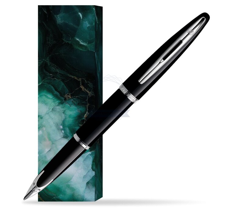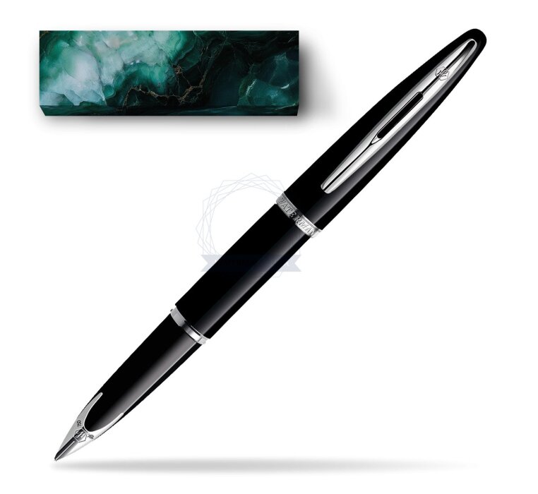 Carène rides the crest of the innovation wave. Taking inspiration from luxury boat design, the result is our most distinguished example of pioneering vision. Crafted in noble materials, with an artist’s attention to detail, its pure fluid curves conjure up the sleekest lines of a leisure cruiser, or the billowing sails of a luxury yacht. Set sail for the adventure of a lifetime. The streamlined silhouette reflects a determination to achieve absolute purity, notably in the sublimely integrated nib of the fountain pen version. Layers of glossy black lacquer and luminous palladium-plated trims bring a stylish touch of modernity to a truly timeless design. Like a plunging bow navigating the infinite possibilities of a pure white page, this rhodium-plated 18K solid gold nib is a unique WATERMAN design. Carène Black Sea ST Fountain pen is ideal as a gift for everyone on all kinds of occasions like birthdays or as a Waterman Christmas gift. This product is perfect for all companies who wants to give Waterman’s gifts for their employees, partners or investors. Once you feel the grace and fluidity in writing of this product you can get Rollerball Pen and Ballpoint Pen matching to the set. This Waterman Fountain Pen can be refilled with every Waterman Ink cartridges or by Waterman Ink in bottle. This Waterman Fountain Pen comes with nib size F. One ink cartridge included in random blue or black colour. This product can be engraved by laser. Presented in its Waterman gift box.