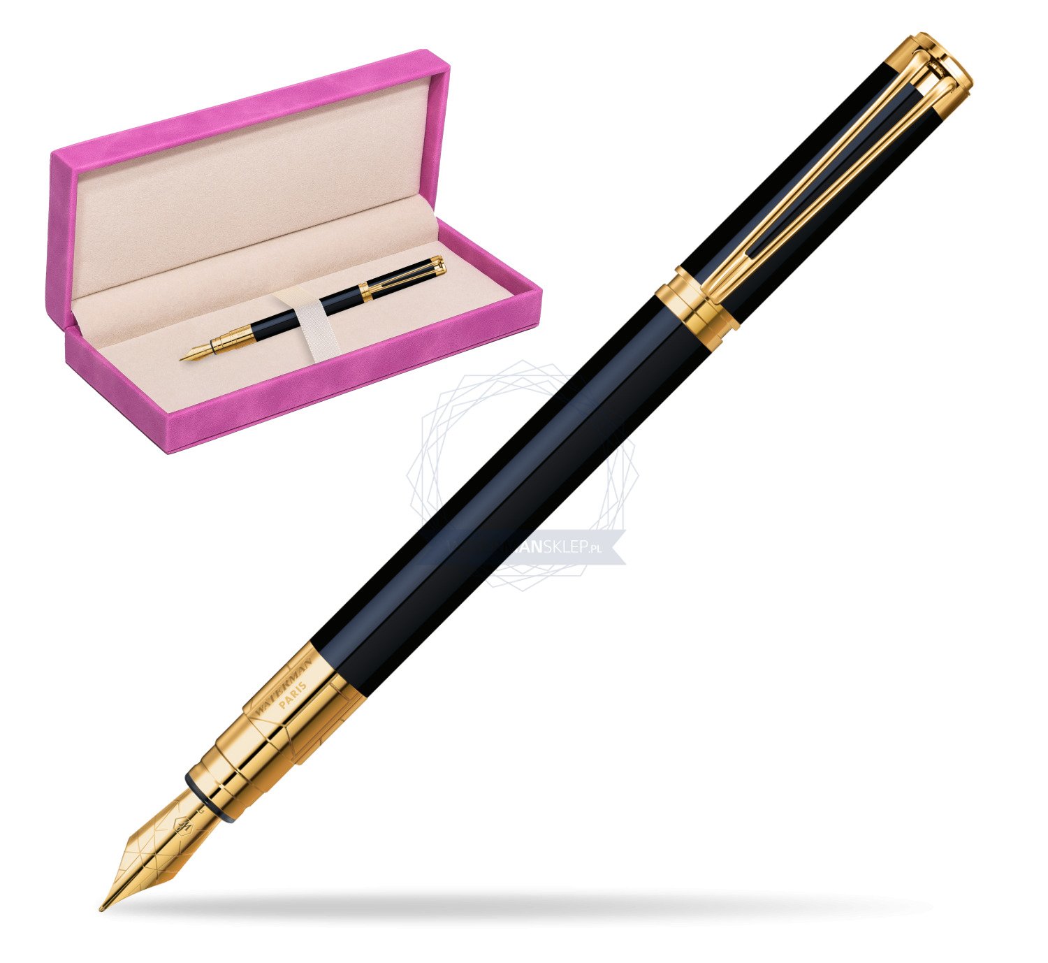 Perspective changes the cityscape at one masterful stroke. Inspired by the purity of modern architecture, its parallel lines go on forever, as limitless as your ideas. Its crisp determination reflects your most focused creative moments. Powerful Waterman design creates a sense of presence whenever you use it. Get ready to reach for the sky. Crafted in France to ensure an exceptional writing experience. Precision detailing includes large modern ring, finely engraved lines and articulated clip. A refined alliance of luxurious black lacquer and rich golden trims creates a striking contrast of noble materials for a bright new vision of pure innovation. Each stainless steel, finely gold plated nib has the sharp-edged impact of a metropolitan landmark with a finely engraved web of powerful oblique lines. Perspective Black GT Fountain pen is ideal as a gift for everyone on all kinds of occasions like birthdays or as a Waterman Christmas gift. This product is perfect for all companies who wants to give Waterman’s gifts for their employees, partners or investors. Once you feel the grace and fluidity in writing of this product you can get Rollerball Pen and Ballpoint Pen matching to the set. This Waterman Fountain Pen can be refilled with every Waterman Ink cartridges or by Waterman Ink in bottle. This Waterman Fountain Pen comes with nib size F. One ink cartridge included in random blue or black colour. This product can be engraved by laser. Presented in its Waterman gift box.