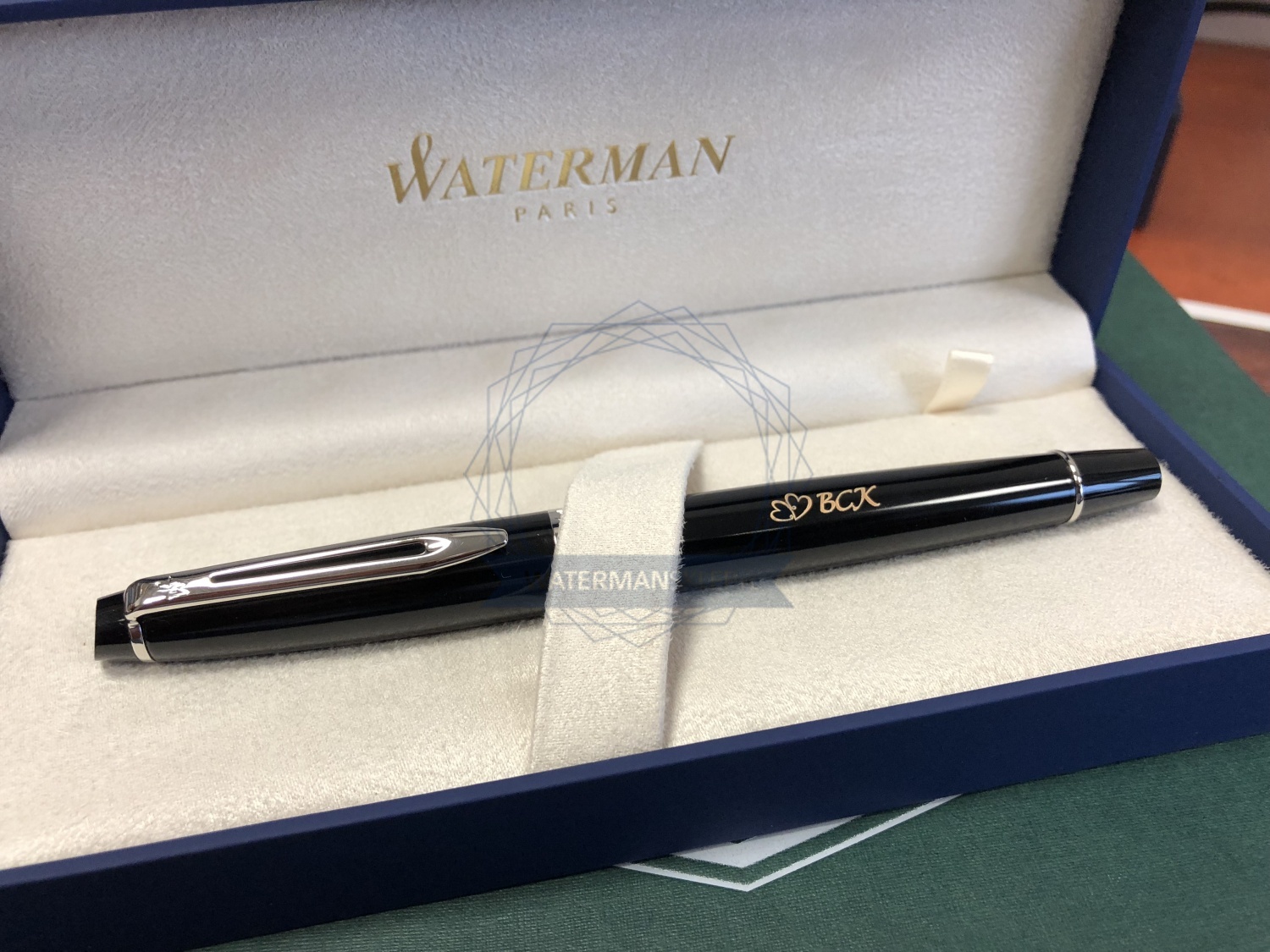Expert brings smart Parisian styling to your business day. With its generous cigar-shaped silhouette and wealth of fine materials, it reveals that beneath your executive persona stirs a creative spirit. Let your vision and flair shine in your professional life with classic Waterman panache. Clients and colleagues will know you by your taste for sophistication. Assertive lines lend a traditional feel to this contemporary classic. The collection features a generous choice of colours and finishes including rich deep lacquers and fine engraving. As contemporary as it is timeless, this accessory associates lacquer of an absolute black with the brilliance of palladium-plated trim. The play between contrasts results in a perfect equilibrium, expressing power and harmony. Made in stainless steel, its nib is both generous and sophisticated. It proudly bears a majestic W, your guarantee of quality and creativity. Expert Black CT Fountain Pen is ideal as a gift for everyone on all kinds of occasions like birthdays or as a Waterman Christmas gift. This product is perfect for all companies who wants to give Waterman’s gifts for their employees, partners or investors. Once you feel the grace and fluidity in writing of this product you can get Rollerball Pen and Ballpoint Pen matching to the set. This Waterman Fountain Pen can be refilled with every Waterman Ink cartridges or by Waterman Ink in bottle. One ink cartridge included in random blue or black colour. This product can be engraved by laser. Presented in its Waterman gift box.