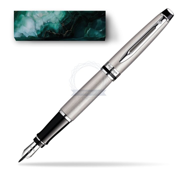 Expert brings smart Parisian styling to your business day. With its generous cigar-shaped silhouette and wealth of fine materials, it reveals that beneath your executive persona stirs a creative spirit. Let your vision and flair shine in your professional life with classic Waterman panache. Clients and colleagues will know you by your taste for sophistication. Assertive lines lend a traditional feel to this contemporary classic. The collection features a generous choice of colours and finishes including rich deep lacquers and fine engraving. When raw metal becomes precious. In brushed steel, with sparkling palladium-plated trim, it deals wittily in contrasts while celebrating contemporary chic. Made in stainless steel, its nib is both generous and sophisticated. It proudly bears a majestic W, your guarantee of quality and creativity. Expert Stainless Steel Fountain pen is ideal as a gift for everyone on all kinds of occasions like birthdays or as a Waterman Christmas gift. This product is perfect for all companies who wants to give Waterman’s gifts for their employees, partners or investors. Once you feel the grace and fluidity in writing of this product you can get Rollerball Pen and Ballpoint Pen matching to the set. This Waterman Fountain Pen can be refilled with every Waterman Ink cartridges or by Waterman Ink in bottle. This Waterman Fountain Pen comes with nib size F. One ink cartridge included in random blue or black colour. This product can be engraved by laser. Presented in its Waterman gift box.