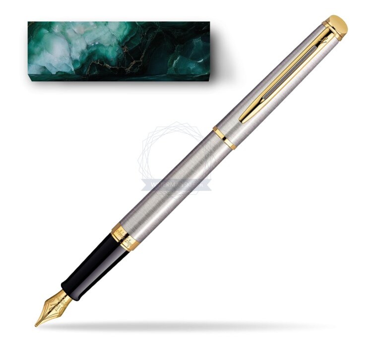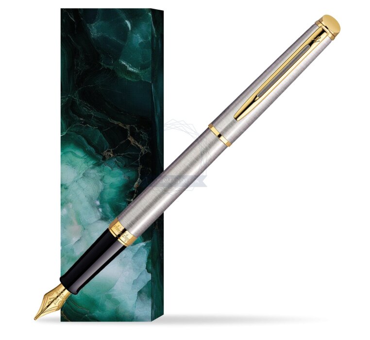 Hémisphère makes each moment refreshingly elegant. In the spirit of Waterman innovation, it redefines timeless lines with a new focus on streamlined simplicity. Striking clean design and noble materials come together for a delightful writing experience to inspire your most creative thoughts. Everything flows from the elegant slim shape. Features a dynamic combination of elements like the slim clip and broad ring, to enhance the distinctively narrow form. Mixing metals for an anytime accessory, brushed solid stainless steel and 23 K golden trims, in a classic composition of smooth discerning style. Comfortable and brilliantly designed, the expertly engraved nib is unmistakable in its writing experience. Hémisphère Stainless Steel GT Fountain pen is ideal as a gift for everyone on all kinds of occasions like birthdays or as a Waterman Christmas gift. This product is perfect for all companies who wants to give Waterman’s gifts for their employees, partners or investors. Once you feel the grace and fluidity in writing of this product you can get Rollerball Pen, Mechanical Pencil and Ballpoint Pen matching to the set. This Waterman Fountain Pen can be refilled with every Waterman Ink cartridges or by Waterman Ink in bottle. This Waterman Fountain Pen comes with nib size F. One ink cartridge included in random blue or black colour. This product can be engraved by laser. Presented in its Waterman gift box.