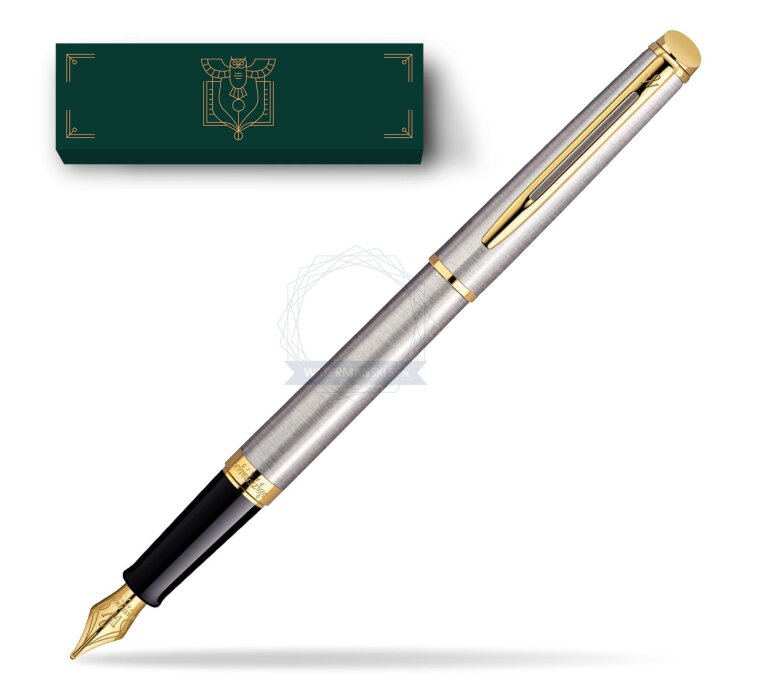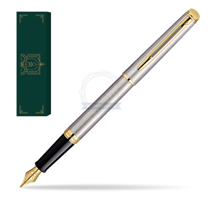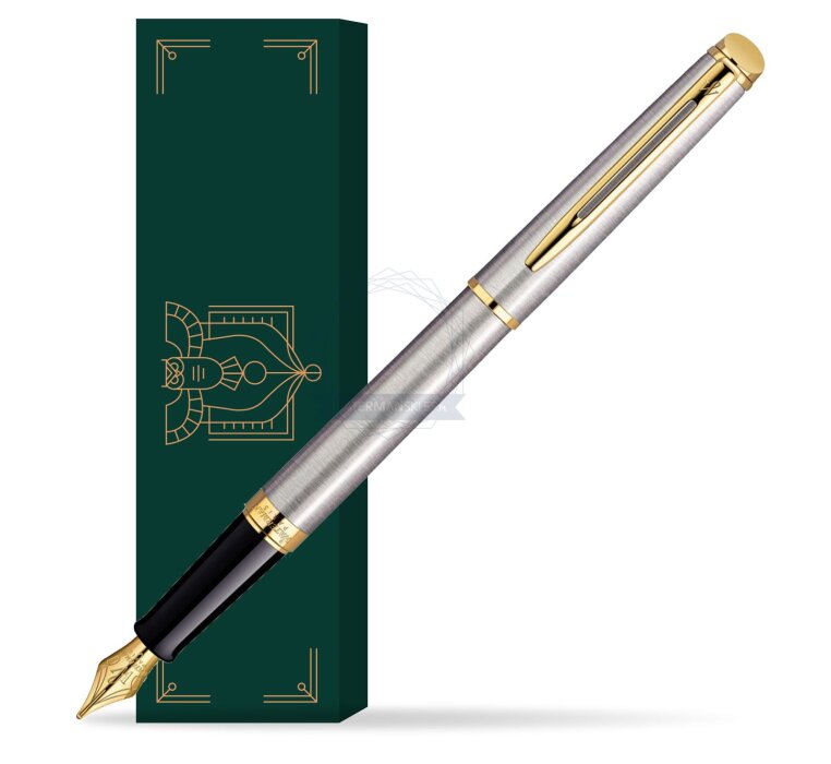 Hémisphère makes each moment refreshingly elegant. In the spirit of Waterman innovation, it redefines timeless lines with a new focus on streamlined simplicity. Striking clean design and noble materials come together for a delightful writing experience to inspire your most creative thoughts. Everything flows from the elegant slim shape. Features a dynamic combination of elements like the slim clip and broad ring, to enhance the distinctively narrow form. Mixing metals for an anytime accessory, brushed solid stainless steel and 23 K golden trims, in a classic composition of smooth discerning style. Comfortable and brilliantly designed, the expertly engraved nib is unmistakable in its writing experience. Hémisphère Stainless Steel GT Fountain pen is ideal as a gift for everyone on all kinds of occasions like birthdays or as a Waterman Christmas gift. This product is perfect for all companies who wants to give Waterman’s gifts for their employees, partners or investors. Once you feel the grace and fluidity in writing of this product you can get Rollerball Pen, Mechanical Pencil and Ballpoint Pen matching to the set. This Waterman Fountain Pen can be refilled with every Waterman Ink cartridges or by Waterman Ink in bottle. This Waterman Fountain Pen comes with nib size F. One ink cartridge included in random blue or black colour. This product can be engraved by laser. Presented in its Waterman gift box.