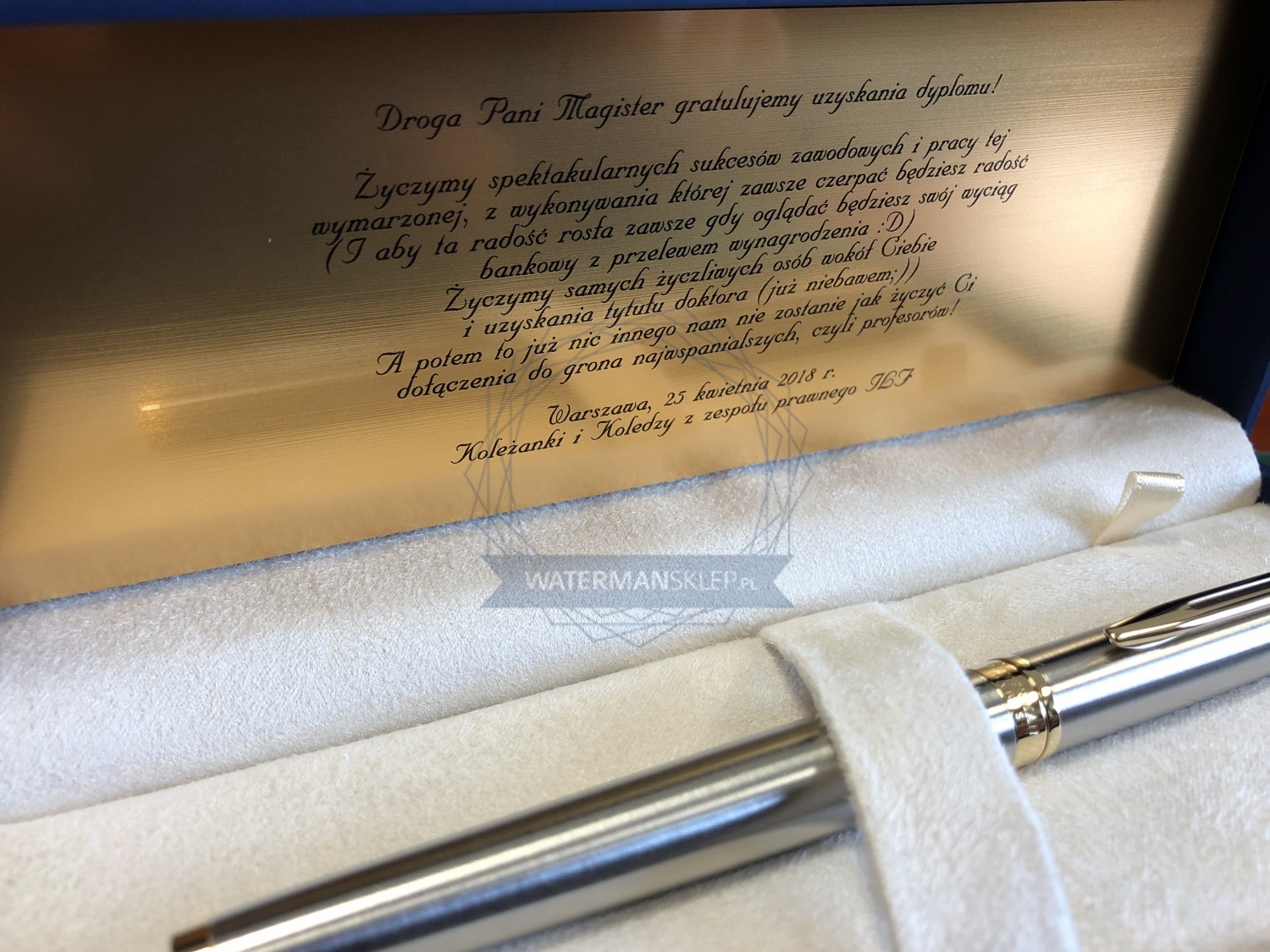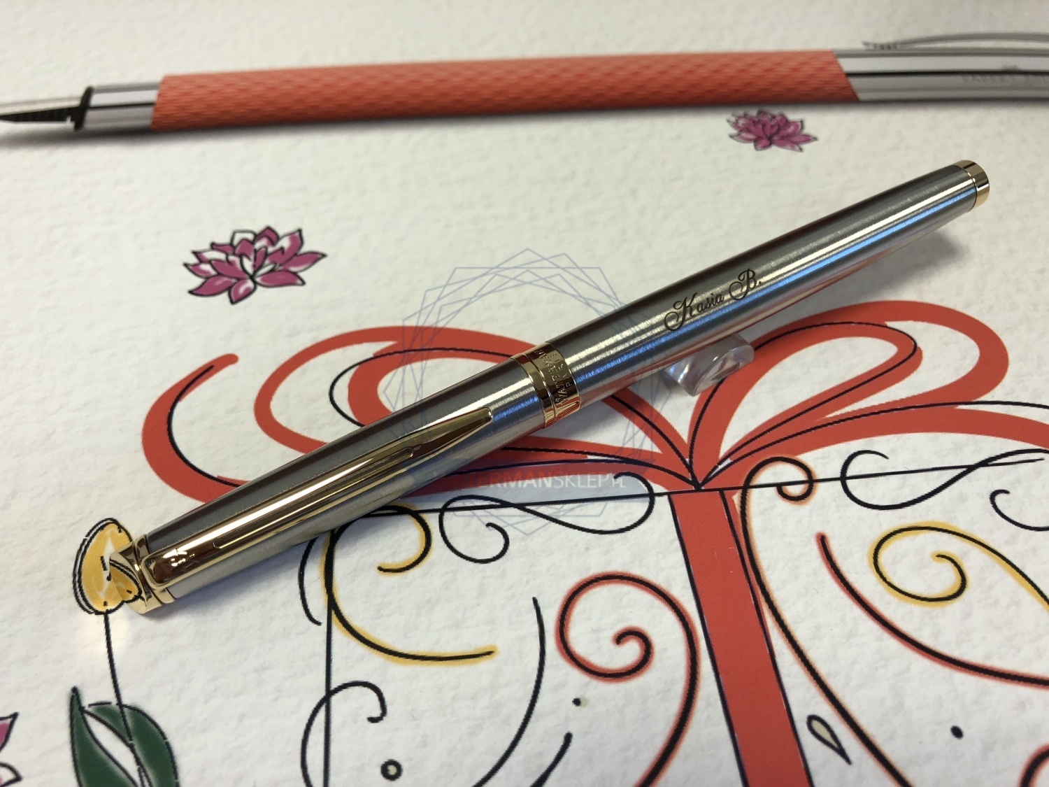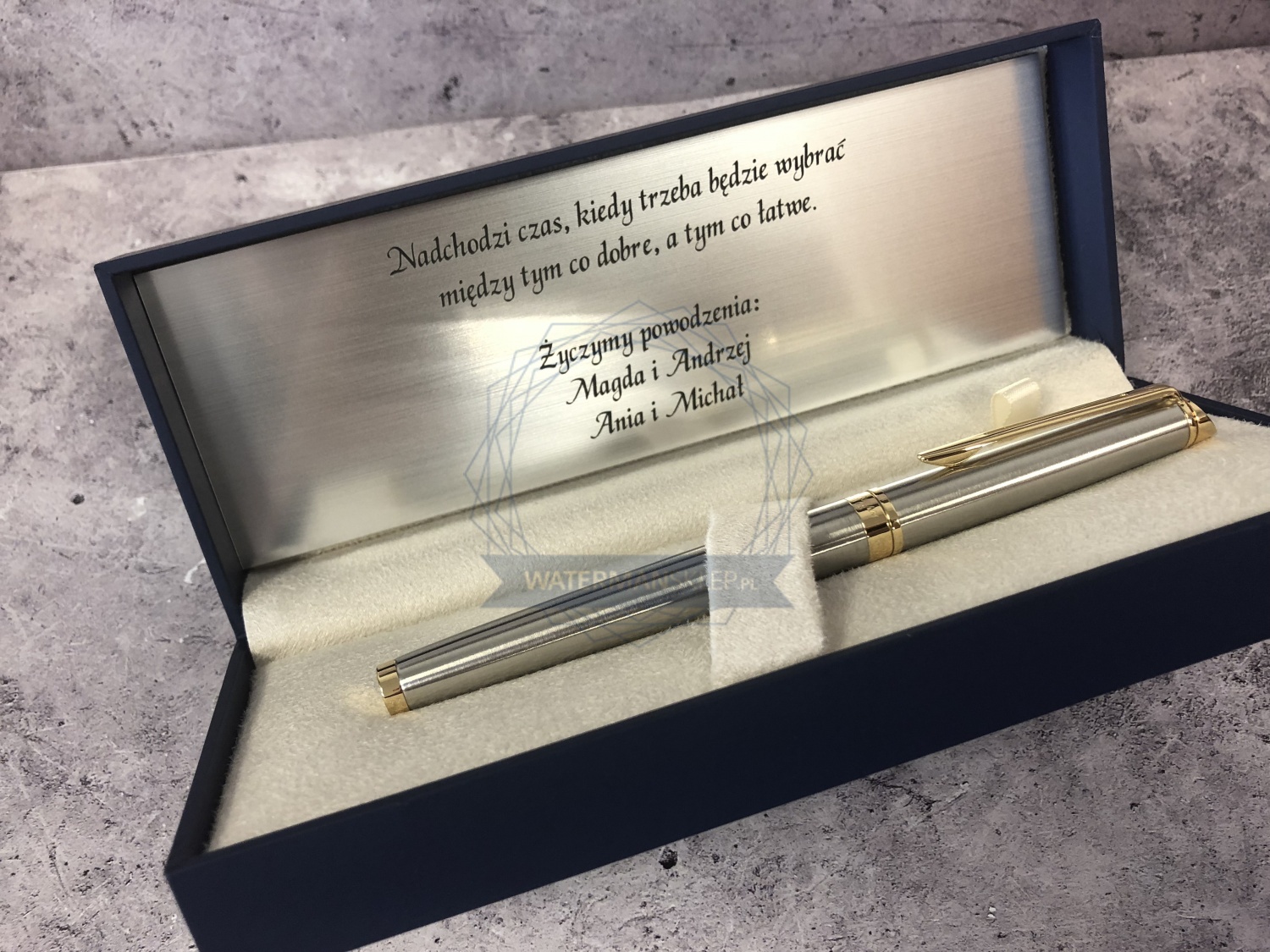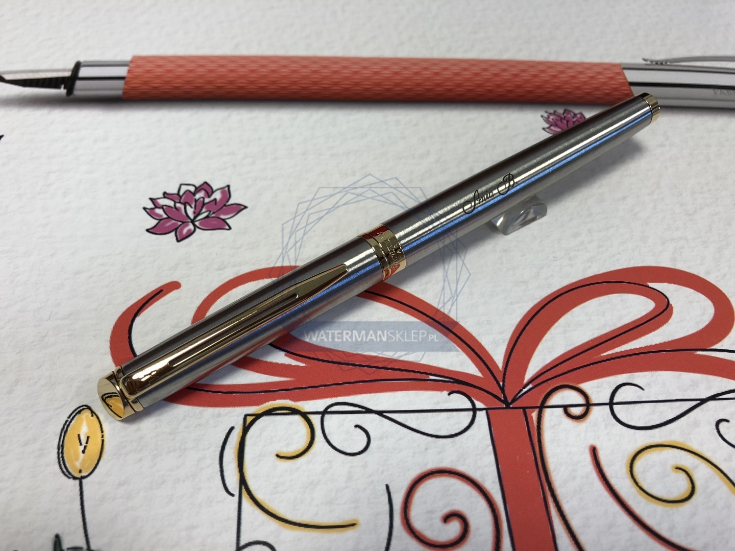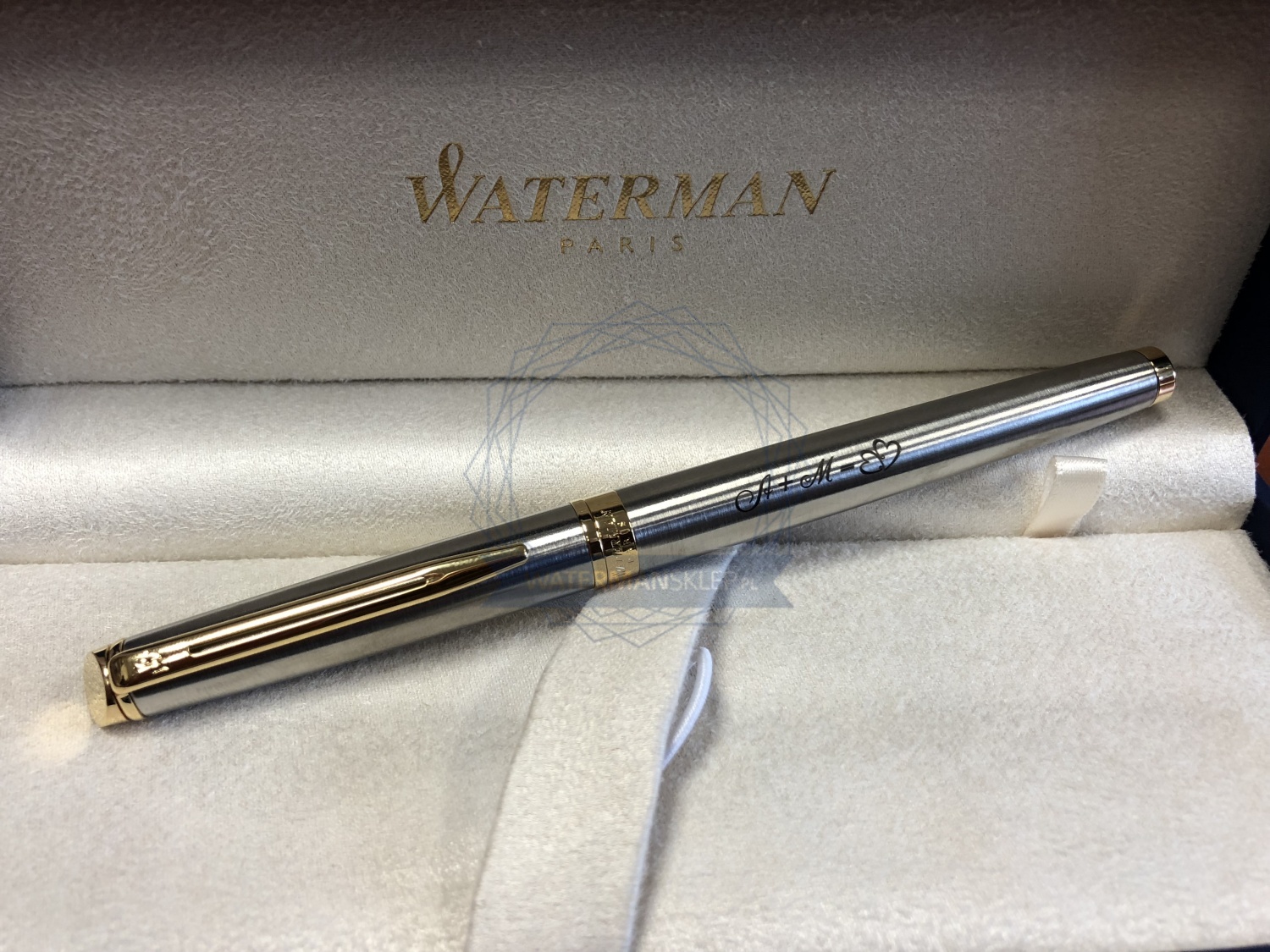 Hémisphère makes each moment refreshingly elegant. In the spirit of Waterman innovation, it redefines timeless lines with a new focus on streamlined simplicity. Striking clean design and noble materials come together for a delightful writing experience to inspire your most creative thoughts. Everything flows from the elegant slim shape. Features a dynamic combination of elements like the slim clip and broad ring, to enhance the distinctively narrow form. Mixing metals for an anytime accessory, brushed solid stainless steel and 23 K golden trims, in a classic composition of smooth discerning style. Comfortable and brilliantly designed, the expertly engraved nib is unmistakable in its writing experience. Hémisphère Stainless Steel GT Fountain pen is ideal as a gift for everyone on all kinds of occasions like birthdays or as a Waterman Christmas gift. This product is perfect for all companies who wants to give Waterman’s gifts for their employees, partners or investors. Once you feel the grace and fluidity in writing of this product you can get Rollerball Pen, Mechanical Pencil and Ballpoint Pen matching to the set. This Waterman Fountain Pen can be refilled with every Waterman Ink cartridges or by Waterman Ink in bottle. This Waterman Fountain Pen comes with nib size F. One ink cartridge included in random blue or black colour. This product can be engraved by laser. Presented in its Waterman gift box.