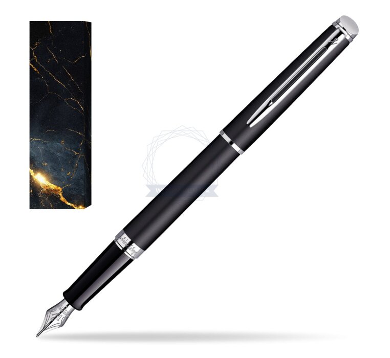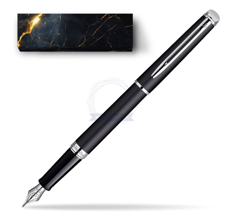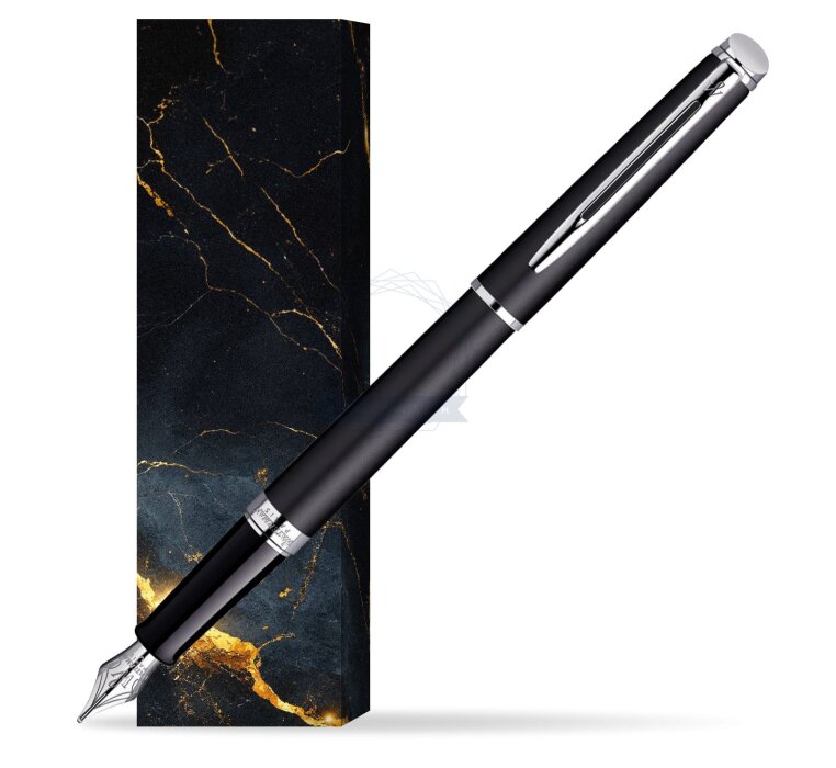 Hémisphère makes each moment refreshingly elegant. In the spirit of Waterman innovation, it redefines timeless lines with a new focus on streamlined simplicity. Striking clean design and noble materials come together for a delightful writing experience to inspire your most creative thoughts. Everything flows from the elegant slim shape. Features a dynamic combination of elements like the slim clip and broad ring, to enhance the distinctively narrow form. A fusion of shine-on-shine black lacquer and palladium plate, blends modern purity with classic refinement for an irresistibly exclusive appeal. Comfortable and brilliantly designed, the expertly engraved nib (Stainless steel) is unmistakable in its writing experience. Hémisphère Matt Black CT Fountain pen is ideal as a gift for everyone on all kinds of occasions like birthdays or as a Waterman Christmas gift. This product is perfect for all companies who wants to give Waterman’s gifts for their employees, partners or investors. Once you feel the grace and fluidity in writing of this product you can get Rollerball Pen, Mechanical Pencil and Ballpoint Pen matching to the set. This Waterman Fountain Pen can be refilled with every Waterman Ink cartridges or by Waterman Ink in bottle. This Waterman Fountain Pen comes with nib size F. One ink cartridge included in random blue or black colour. This product can be engraved by laser. Presented in its Waterman gift box.