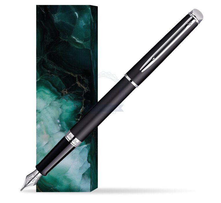 Hémisphère makes each moment refreshingly elegant. In the spirit of Waterman innovation, it redefines timeless lines with a new focus on streamlined simplicity. Striking clean design and noble materials come together for a delightful writing experience to inspire your most creative thoughts. Everything flows from the elegant slim shape. Features a dynamic combination of elements like the slim clip and broad ring, to enhance the distinctively narrow form. A fusion of shine-on-shine black lacquer and palladium plate, blends modern purity with classic refinement for an irresistibly exclusive appeal. Comfortable and brilliantly designed, the expertly engraved nib (Stainless steel) is unmistakable in its writing experience. Hémisphère Matt Black CT Fountain pen is ideal as a gift for everyone on all kinds of occasions like birthdays or as a Waterman Christmas gift. This product is perfect for all companies who wants to give Waterman’s gifts for their employees, partners or investors. Once you feel the grace and fluidity in writing of this product you can get Rollerball Pen, Mechanical Pencil and Ballpoint Pen matching to the set. This Waterman Fountain Pen can be refilled with every Waterman Ink cartridges or by Waterman Ink in bottle. This Waterman Fountain Pen comes with nib size F. One ink cartridge included in random blue or black colour. This product can be engraved by laser. Presented in its Waterman gift box.