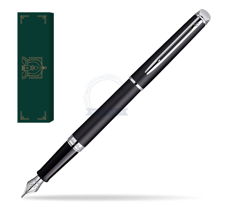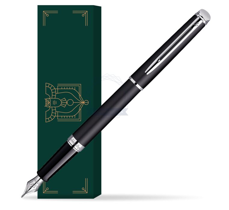 Hémisphère makes each moment refreshingly elegant. In the spirit of Waterman innovation, it redefines timeless lines with a new focus on streamlined simplicity. Striking clean design and noble materials come together for a delightful writing experience to inspire your most creative thoughts. Everything flows from the elegant slim shape. Features a dynamic combination of elements like the slim clip and broad ring, to enhance the distinctively narrow form. A fusion of shine-on-shine black lacquer and palladium plate, blends modern purity with classic refinement for an irresistibly exclusive appeal. Comfortable and brilliantly designed, the expertly engraved nib (Stainless steel) is unmistakable in its writing experience. Hémisphère Matt Black CT Fountain pen is ideal as a gift for everyone on all kinds of occasions like birthdays or as a Waterman Christmas gift. This product is perfect for all companies who wants to give Waterman’s gifts for their employees, partners or investors. Once you feel the grace and fluidity in writing of this product you can get Rollerball Pen, Mechanical Pencil and Ballpoint Pen matching to the set. This Waterman Fountain Pen can be refilled with every Waterman Ink cartridges or by Waterman Ink in bottle. This Waterman Fountain Pen comes with nib size F. One ink cartridge included in random blue or black colour. This product can be engraved by laser. Presented in its Waterman gift box.