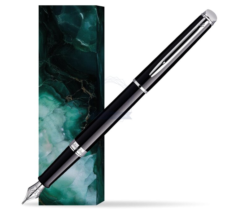 Hémisphère makes each moment refreshingly elegant. In the spirit of Waterman innovation, it redefines timeless lines with a new focus on streamlined simplicity. Striking clean design and noble materials come together for a delightful writing experience to inspire your most creative thoughts. Everything flows from the elegant slim shape. Features a dynamic combination of elements like the slim clip and broad ring, to enhance the distinctively narrow form. Indulge in exquisite refinement and effortless sophistication with the refined, rippled strokes of this iconic palladium plated chiselled wave design. Comfortable and brilliantly designed, the expertly engraved nib (Stainless steel) is unmistakable in its writing experience. Hémisphère Black CT Fountain pen is ideal as a gift for everyone on all kinds of occasions like birthdays or as a Waterman Christmas gift. This product is perfect for all companies who wants to give Waterman’s gifts for their employees, partners or investors. Once you feel the grace and fluidity in writing of this product you can get Rollerball Pen, Mechanical Pencil and Ballpoint Pen matching to the set. This Waterman Fountain Pen can be refilled with every Waterman Ink cartridges or by Waterman Ink in bottle. This Waterman Fountain Pen comes with nib size F. One ink cartridge included in random blue or black colour. This product can be engraved by laser.