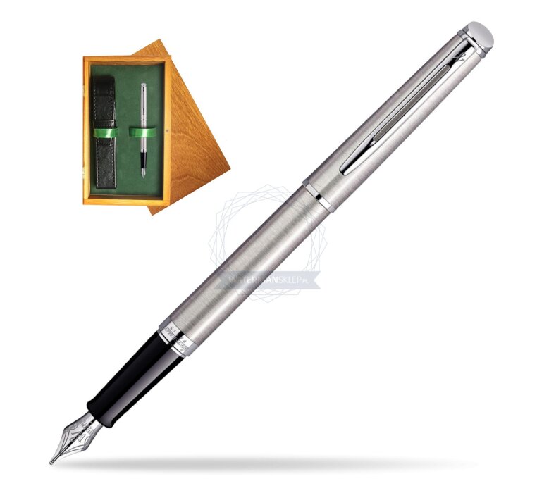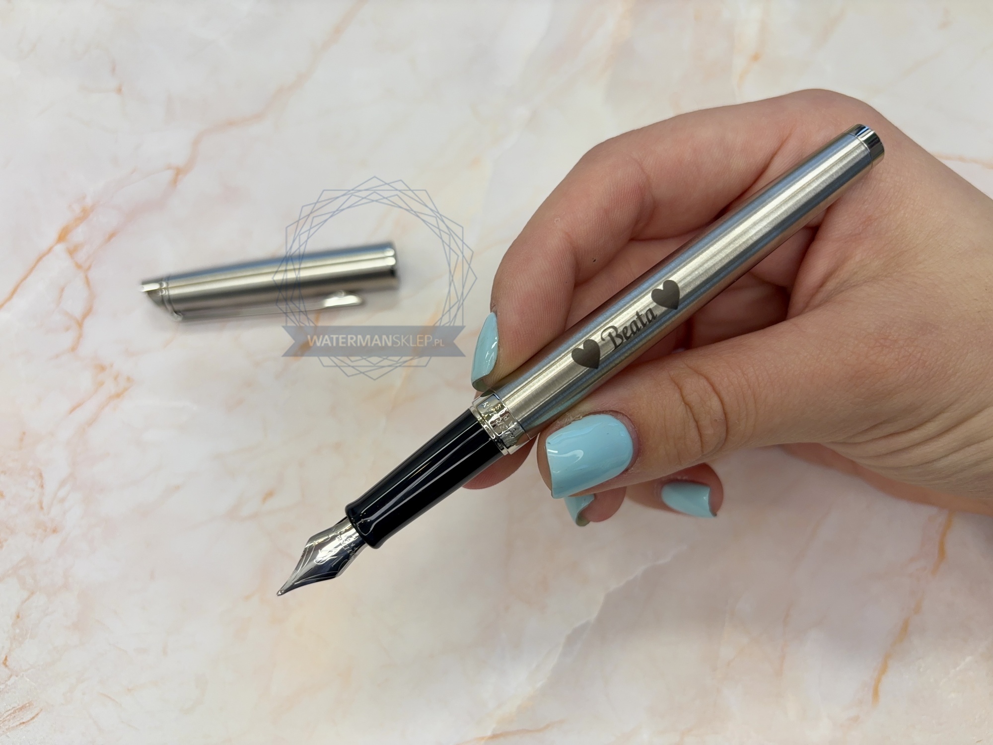 Hémisphère makes each moment refreshingly elegant. In the spirit of Waterman innovation, it redefines timeless lines with a new focus on streamlined simplicity. Striking clean design and noble materials come together for a delightful writing experience to inspire your most creative thoughts. Everything flows from the elegant slim shape. Features a dynamic combination of elements like the slim clip and broad ring, to enhance the distinctively narrow form. Contemporary brushed stainless steel and vivid palladium plated trims, highlight the slim and smooth-touch finish with the cool, clear colour of ice. Comfortable and brilliantly designed, the expertly engraved nib (Stainless steel) is unmistakable in its writing experience. Hémisphère Stainless Steel CT Fountain pen is ideal as a gift for everyone on all kinds of occasions like birthdays or as a Waterman Christmas gift. This product is perfect for all companies who wants to give Waterman’s gifts for their employees, partners or investors. Once you feel the grace and fluidity in writing of this product you can get Rollerball Pen, Mechanical Pencil and Ballpoint Pen matching to the set. This Waterman Fountain Pen can be refilled with every Waterman Ink cartridges or by Waterman Ink in bottle. This Waterman Fountain Pen comes with nib size F. One ink cartridge included in random blue or black colour. This product can be engraved by laser. Presented in its Waterman gift box.