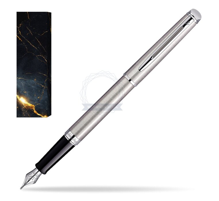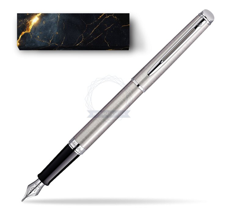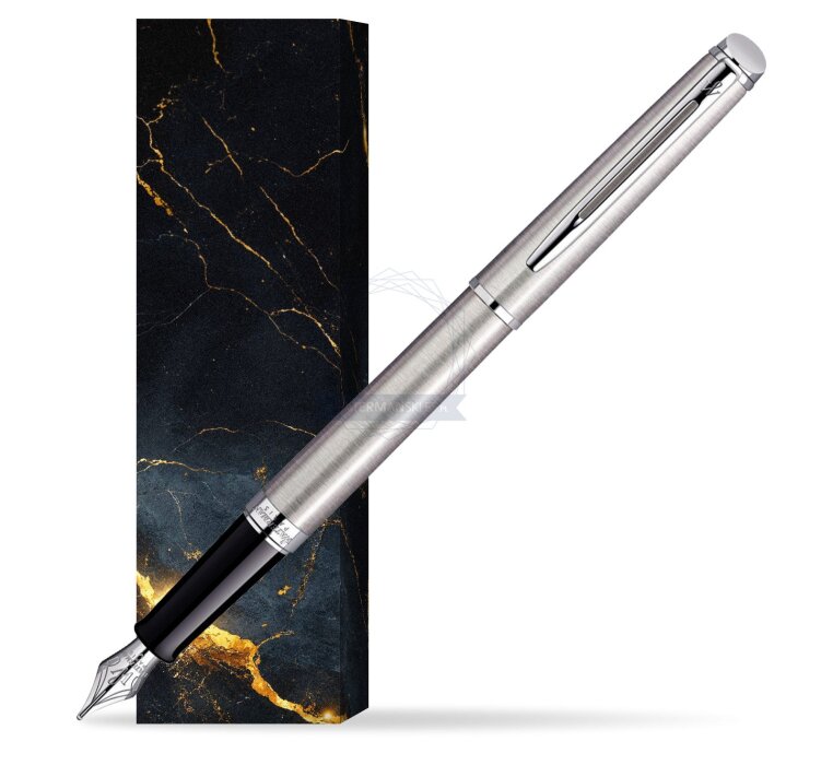 Hémisphère makes each moment refreshingly elegant. In the spirit of Waterman innovation, it redefines timeless lines with a new focus on streamlined simplicity. Striking clean design and noble materials come together for a delightful writing experience to inspire your most creative thoughts. Everything flows from the elegant slim shape. Features a dynamic combination of elements like the slim clip and broad ring, to enhance the distinctively narrow form. Contemporary brushed stainless steel and vivid palladium plated trims, highlight the slim and smooth-touch finish with the cool, clear colour of ice. Comfortable and brilliantly designed, the expertly engraved nib (Stainless steel) is unmistakable in its writing experience. Hémisphère Stainless Steel CT Fountain pen is ideal as a gift for everyone on all kinds of occasions like birthdays or as a Waterman Christmas gift. This product is perfect for all companies who wants to give Waterman’s gifts for their employees, partners or investors. Once you feel the grace and fluidity in writing of this product you can get Rollerball Pen, Mechanical Pencil and Ballpoint Pen matching to the set. This Waterman Fountain Pen can be refilled with every Waterman Ink cartridges or by Waterman Ink in bottle. This Waterman Fountain Pen comes with nib size F. One ink cartridge included in random blue or black colour. This product can be engraved by laser. Presented in its Waterman gift box.