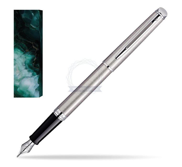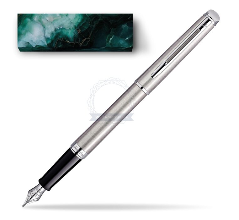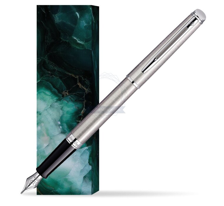 Hémisphère makes each moment refreshingly elegant. In the spirit of Waterman innovation, it redefines timeless lines with a new focus on streamlined simplicity. Striking clean design and noble materials come together for a delightful writing experience to inspire your most creative thoughts. Everything flows from the elegant slim shape. Features a dynamic combination of elements like the slim clip and broad ring, to enhance the distinctively narrow form. Contemporary brushed stainless steel and vivid palladium plated trims, highlight the slim and smooth-touch finish with the cool, clear colour of ice. Comfortable and brilliantly designed, the expertly engraved nib (Stainless steel) is unmistakable in its writing experience. Hémisphère Stainless Steel CT Fountain pen is ideal as a gift for everyone on all kinds of occasions like birthdays or as a Waterman Christmas gift. This product is perfect for all companies who wants to give Waterman’s gifts for their employees, partners or investors. Once you feel the grace and fluidity in writing of this product you can get Rollerball Pen, Mechanical Pencil and Ballpoint Pen matching to the set. This Waterman Fountain Pen can be refilled with every Waterman Ink cartridges or by Waterman Ink in bottle. This Waterman Fountain Pen comes with nib size F. One ink cartridge included in random blue or black colour. This product can be engraved by laser. Presented in its Waterman gift box.
