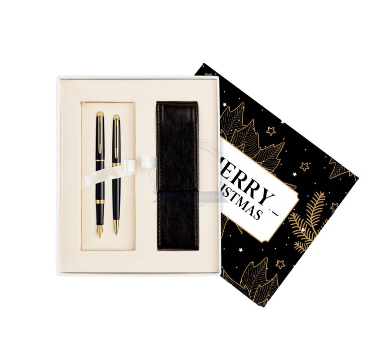 We offer to You Waterman special gift box which contains Waterman Hémisphère Black GT Fountain pen + Waterman Hémisphère Black GT Ballpoint Pen. Hémisphère makes each moment refreshingly elegant. In the spirit of Waterman innovation, it redefines timeless lines with a new focus on streamlined simplicity. Striking clean design and noble materials come together for a delightful writing experience to inspire your most creative thoughts. Everything flows from the elegant slim shape. Features a dynamic combination of elements like the slim clip and broad ring, to enhance the distinctively narrow form. A beautiful basic with a brilliant shine, the black and gold duo in superior smooth lacquer and valuable 23K golden trims is timeless in its simplicity. Comfortable and brilliantly designed, the expertly engraved nib (Stainless steel with fine gold plating) is unmistakable in its writing experience. Set is ideal as a gift for everyone on all kinds of occasions like birthdays or as a Waterman Christmas gift. This set is perfect for all companies who wants to give Waterman gifts for their employees, partners or investors. Waterman Ballpoint Pen can be refilled with every Waterman Ballpoint refill and Fountain Pen can be refilled with Waterman Ink in bottle or Ink cartridges. This Waterman Ballpoint Pen comes with a Ballpoint refill is in random colour Black or blue and blue Fountain Pen Ink cartridge. Presented in its Waterman special gift box designed for two Waterman products.