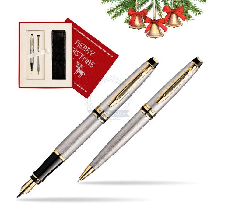 We offer to You Waterman special gift box which contains Waterman Expert Stainless Steel GT Fountain pen + Waterman Expert Stainless Steel GT Ballpoint Pe. Expert brings smart Parisian styling to your business day. With its generous cigar-shaped silhouette and wealth of fine materials, it reveals that beneath your executive persona stirs a creative spirit. Let your vision and flair shine in your professional life with classic Waterman panache. Clients and colleagues will know you by your taste for sophistication. Assertive lines lend a traditional feel to this contemporary classic. The collection features a generous choice of colours and finishes including rich deep lacquers and fine engraving. Brushed steel, golden trims... the alchemist's art allies these metals to create an accessory both contemporary and sophisticated. Its smooth curves add suppleness to your handwriting. As generous as it is sophisticated, this finely gold plated stainless steel nib is adorned with the emblematic W for Waterman. Set is ideal as a gift for everyone on all kinds of occasions like birthdays or as a Waterman Christmas gift. This set is perfect for all companies who wants to give Waterman gifts for their employees, partners or investors. Waterman Ballpoint Pen can be refilled with every Waterman Ballpoint refill and Fountain Pen can be refilled with Waterman Ink in bottle or Ink cartridges. This Waterman Ballpoint Pen comes with a Ballpoint refill is in random colour Black or blue and blue Fountain Pen Ink cartridge. Presented in its Waterman special gift box designed for two Waterman products.