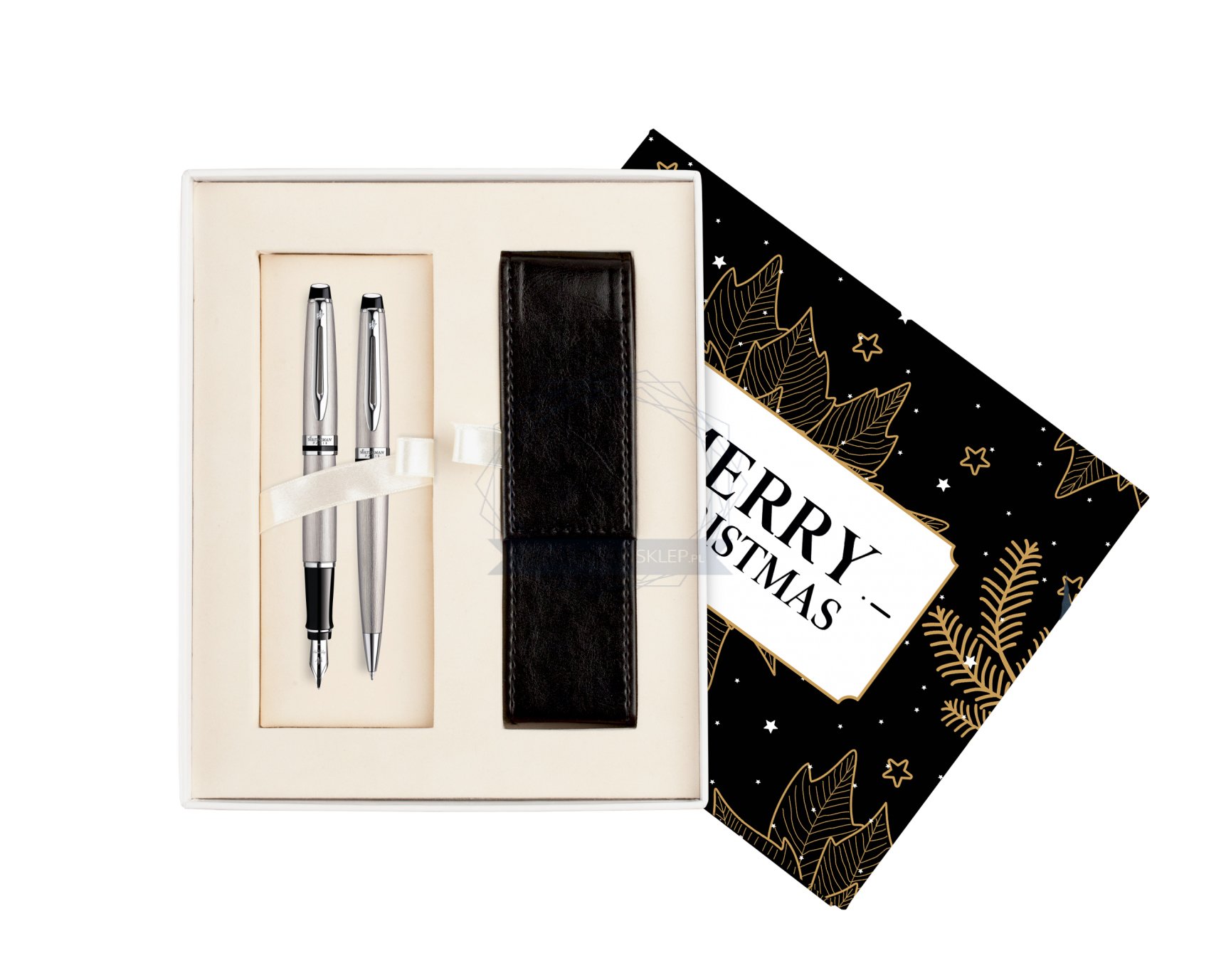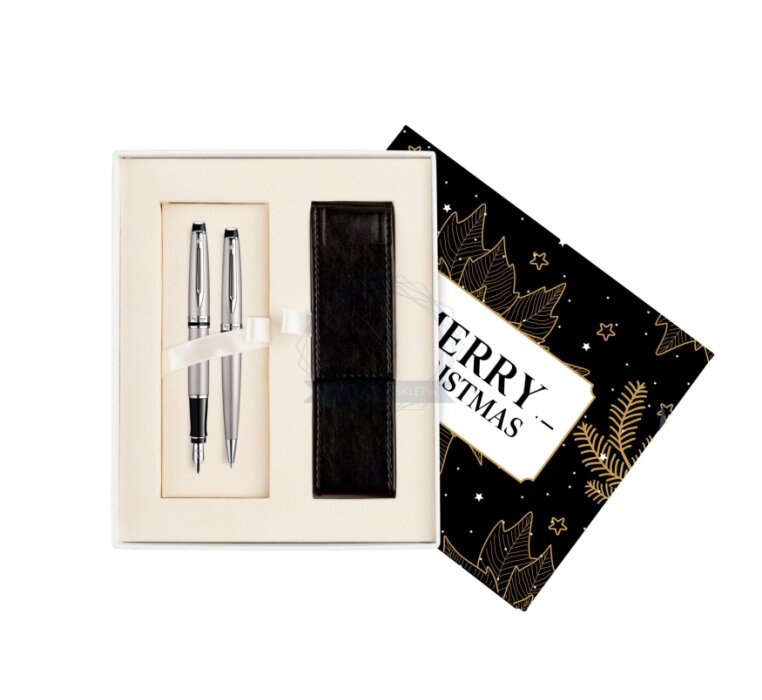 We offer to You Waterman special gift box which contains Waterman Expert Stainless Steel CT Fountain pen + Waterman Expert Stainless Steel CT Ballpoint Pen. Expert brings smart Parisian styling to your business day. With its generous cigar-shaped silhouette and wealth of fine materials, it reveals that beneath your executive persona stirs a creative spirit. Let your vision and flair shine in your professional life with classic Waterman panache. Clients and colleagues will know you by your taste for sophistication. Assertive lines lend a traditional feel to this contemporary classic. The collection features a generous choice of colours and finishes including rich deep lacquers and fine engraving. When raw metal becomes precious. In brushed steel, with sparkling palladium-plated trim, it deals wittily in contrasts while celebrating contemporary chic. Made in stainless steel, its nib is both generous and sophisticated. It proudly bears a majestic W, your guarantee of quality and creativity. Set is ideal as a gift for everyone on all kinds of occasions like birthdays or as a Waterman Christmas gift. This set is perfect for all companies who wants to give Waterman gifts for their employees, partners or investors. Waterman Ballpoint Pen can be refilled with every Waterman Ballpoint refill and Fountain Pen can be refilled with Waterman Ink in bottle or Ink cartridges. This Waterman Ballpoint Pen comes with a Ballpoint refill is in random colour Black or blue and blue Fountain Pen Ink cartridge. Presented in its Waterman special gift box designed for two Waterman products.