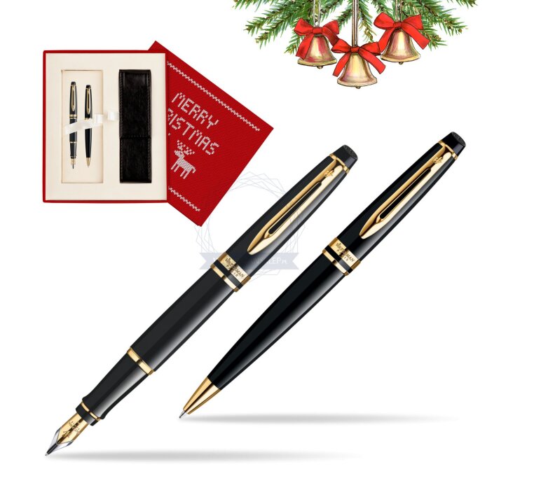 We offer to You Waterman special gift box which contains Waterman Expert Black GT Fountain Pen + Waterman Expert Black GT Fountain Pen Ballpoint Pen. Expert brings smart Parisian styling to your business day. With its generous cigar-shaped silhouette and wealth of fine materials, it reveals that beneath your executive persona stirs a creative spirit. Let your vision and flair shine in your professional life with classic Waterman panache. Clients and colleagues will know you by your taste for sophistication. Assertive lines lend a traditional feel to this contemporary classic. The collection features a generous choice of colours and finishes including rich deep lacquers and fine engraving. Only the discreet golden gleam of its trim competes with the deep black of its lacquer. A powerful, contemporary combination, of timeless elegance. Its smooth curves add suppleness to your handwriting. As generous as it is sophisticated, this finely gold plated stainless steel nib is adorned with the emblematic W for Waterman. Set is ideal as a gift for everyone on all kinds of occasions like birthdays or as a Waterman Christmas gift. This set is perfect for all companies who wants to give Waterman gifts for their employees, partners or investors. Waterman Ballpoint Pen can be refilled with every Waterman Ballpoint refill and Fountain Pen can be refilled with Waterman Ink in bottle or Ink cartridges. This Waterman Ballpoint Pen comes with a Ballpoint refill is in random colour Black or blue and blue Fountain Pen Ink cartridge. Presented in its Waterman special gift box designed for two Waterman products.