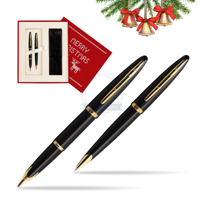 We offer to You Waterman special gift box which contains Waterman Carène Black Sea GT Fountain pen + Waterman Carène Black Sea GT Ballpoint Pen. Carène rides the crest of the innovation wave. Taking inspiration from luxury boat design, the result is our most distinguished example of pioneering vision. Crafted in noble materials, with an artist’s attention to detail, its pure fluid curves conjure up the sleekest lines of a leisure cruiser, or the billowing sails of a luxury yacht. Set sail for the adventure of a lifetime. The streamlined silhouette reflects a determination to achieve absolute purity, notably in the sublimely integrated nib of the fountain pen version. A striking combination of high-gloss black lacquer and rich 24K golden trims produces the classic expression of refined sophistication. Like a plunging bow navigating the infinite possibilities of a pure white page, this rhodium-plated 18K solid gold nib is a unique WATERMAN design. Set is ideal as a gift for everyone on all kinds of occasions like birthdays or as a Waterman Christmas gift. This set is perfect for all companies who wants to give Waterman gifts for their employees, partners or investors. Waterman Ballpoint Pen can be refilled with every Waterman Ballpoint refill and Fountain Pen can be refilled with Waterman Ink in bottle or Ink cartridges. This Waterman Ballpoint Pen comes with a Ballpoint refill is in random colour Black or blue and blue Fountain Pen Ink cartridge. Presented in its Waterman special gift box designed for two Waterman products.