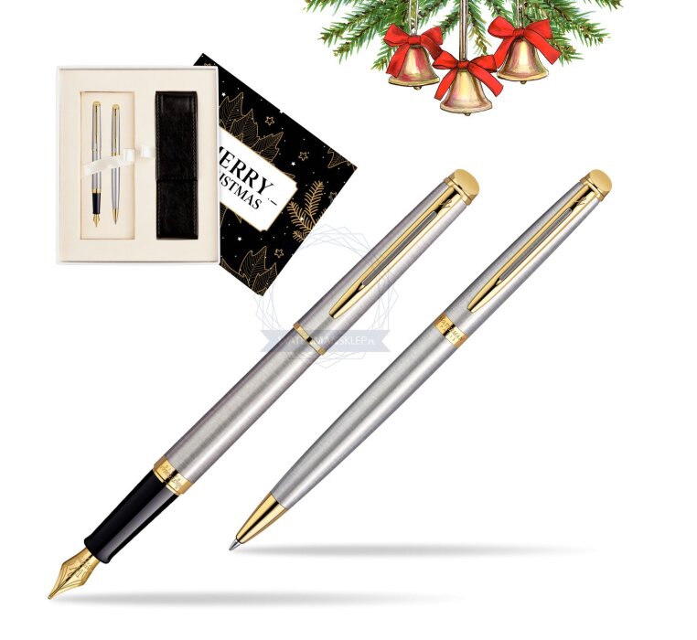 We offer to You Waterman special gift box which contains Waterman Hémisphère Stainless Steel GT Fountain pen + Waterman Hémisphère Stainless Steel GT Ballpoint Pen. Hémisphère makes each moment refreshingly elegant. In the spirit of Waterman innovation, it redefines timeless lines with a new focus on streamlined simplicity. Striking clean design and noble materials come together for a delightful writing experience to inspire your most creative thoughts. Everything flows from the elegant slim shape. Features a dynamic combination of elements like the slim clip and broad ring, to enhance the distinctively narrow form. Mixing metals for an anytime accessory, brushed solid stainless steel and 23 K golden trims, in a classic composition of smooth discerning style. Comfortable and brilliantly designed, the expertly engraved nib is unmistakable in its writing experience. Set is ideal as a gift for everyone on all kinds of occasions like birthdays or as a Waterman Christmas gift. This set is perfect for all companies who wants to give Waterman gifts for their employees, partners or investors. Waterman Ballpoint Pen can be refilled with every Waterman Ballpoint refill and Fountain Pen can be refilled with Waterman Ink in bottle or Ink cartridges. This Waterman Ballpoint Pen comes with a Ballpoint refill is in random colour Black or blue and blue Fountain Pen Ink cartridge. Presented in its Waterman special gift box designed for two Waterman products.