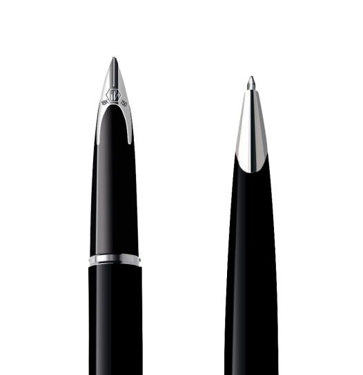 We offer to You Waterman special gift box which contains Waterman Carène Black Sea ST Fountain pen + Waterman Carène Black Sea ST Ballpoint Pen. Carène rides the crest of the innovation wave. Taking inspiration from luxury boat design, the result is our most distinguished example of pioneering vision. Crafted in noble materials, with an artist’s attention to detail, its pure fluid curves conjure up the sleekest lines of a leisure cruiser, or the billowing sails of a luxury yacht. Set sail for the adventure of a lifetime. The streamlined silhouette reflects a determination to achieve absolute purity, notably in the sublimely integrated nib of the fountain pen version. Layers of glossy black lacquer and luminous palladium-plated trims bring a stylish touch of modernity to a truly timeless design. Like a plunging bow navigating the infinite possibilities of a pure white page, this rhodium-plated 18K solid gold nib is a unique WATERMAN design. Set is ideal as a gift for everyone on all kinds of occasions like birthdays or as a Waterman Christmas gift. This set is perfect for all companies who wants to give Waterman gifts for their employees, partners or investors. Waterman Ballpoint Pen can be refilled with every Waterman Ballpoint refill and Fountain Pen can be refilled with Waterman Ink in bottle or Ink cartridges. This Waterman Ballpoint Pen comes with a Ballpoint refill is in random colour Black or blue and blue Fountain Pen Ink cartridge. Presented in its Waterman special gift box designed for two Waterman products.