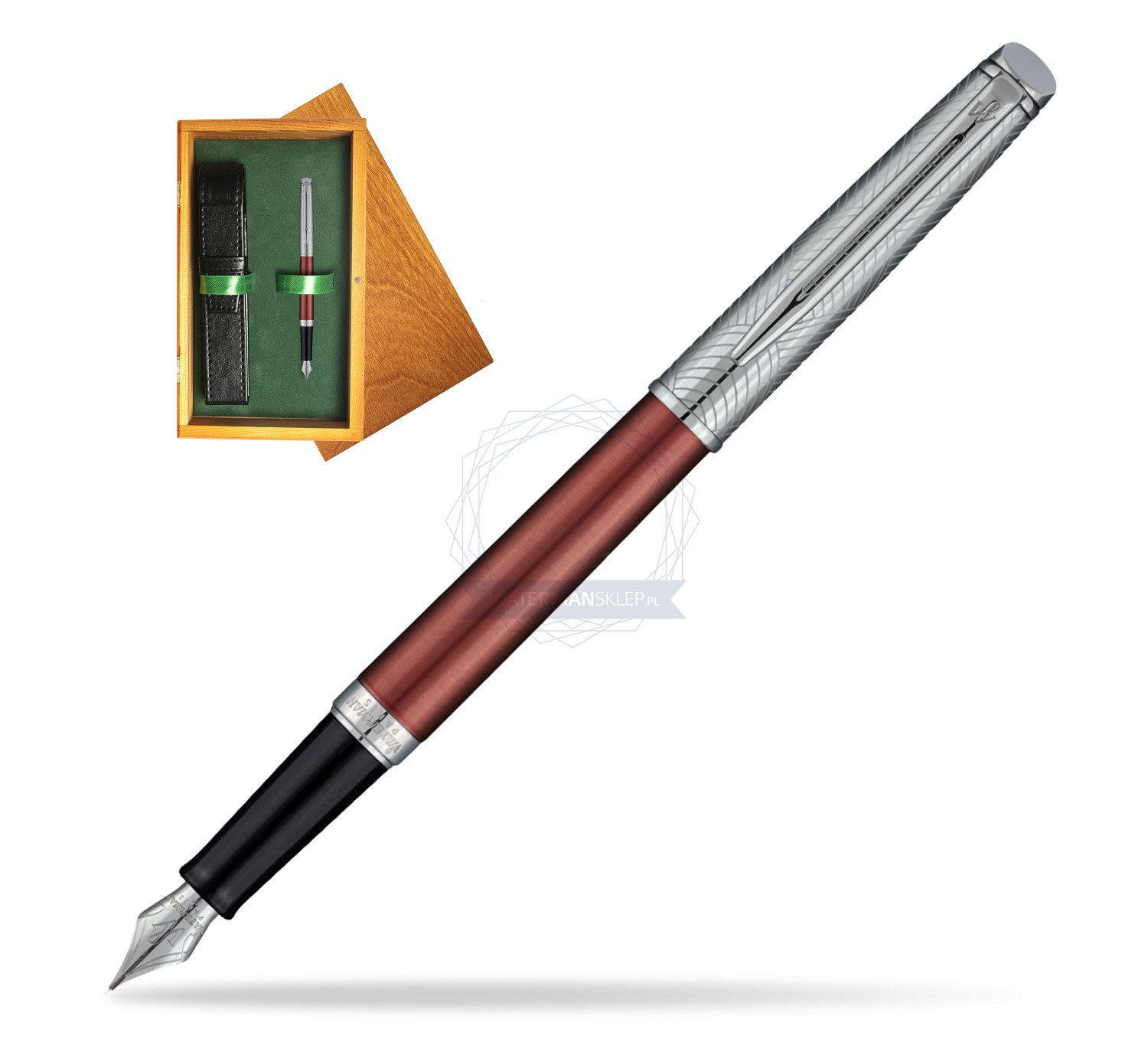 Hémisphère Rose Cuivré reflects the creative spirit of Waterman and is deeply inspired by the arts of the early twentieth century. The engraving on the cap echoes the geometric flow of Art Deco creations, while the shimmery copper finish of the body conveys dazzling sophistication. The coppery pink finish of this fine pen is complemented by a precise work of engraving on its cap. Comfortable and brilliantly designed, the expertly engraved nib is unmistakable in its writing experience. Clip with palladium finish. Waterman Hemisphere Privée Rose Cuivré Fountain Pen is ideal as a gift for everyone on all kinds of occasions like birthdays or as a Waterman Christmas gift. This product is perfect for all companies who wants to give Waterman’s gifts for their employees, partners or investors. Once you feel the grace and fluidity in writing of this product you can get Rollerball Pen and Ballpoint matching to the set. This Waterman Fountain Pen can be refilled with every Waterman Ink cartridges or by Waterman Ink in bottle. This Waterman Fountain Pen comes with nib size F. One ink cartridge included in random blue or black colour. Presented in its Waterman gift box.