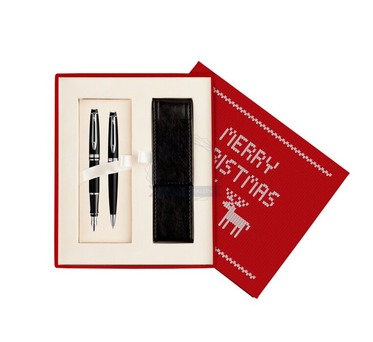 We offer to You Waterman special gift box which contains Waterman Expert Matt Black CT Fountain Pen + Waterman Expert Matt Black CT Ballpoint Pen. Expert brings smart Parisian styling to your business day. With its generous cigar-shaped silhouette and wealth of fine materials, it reveals that beneath your executive persona stirs a creative spirit. Let your vision and flair shine in your professional life with classic Waterman panache. Clients and colleagues will know you by your taste for sophistication. Assertive lines lend a traditional feel to this contemporary classic. The collection features a generous choice of colours and finishes including rich deep lacquers and fine engraving. Intense, surprising, elegant. With its palladium-plated trim and its ultra contemporary matt black, it once more demonstrates its ability to reinterpret established codes. Made in stainless steel, its nib is both generous and sophisticated. It proudly bears a majestic W, your guarantee of quality and creativity. Set is ideal as a gift for everyone on all kinds of occasions like birthdays or as a Waterman Christmas gift. This set is perfect for all companies who wants to give Waterman gifts for their employees, partners or investors. Waterman Ballpoint Pen can be refilled with every Waterman Ballpoint refill and Fountain Pen can be refilled with Waterman Ink in bottle or Ink cartridges. This product can be engraved by laser. This Waterman Ballpoint Pen comes with a Ballpoint refill is in random colour Black or blue and blue Fountain Pen Ink cartridge. Presented in its Waterman special gift box designed for two Waterman products.