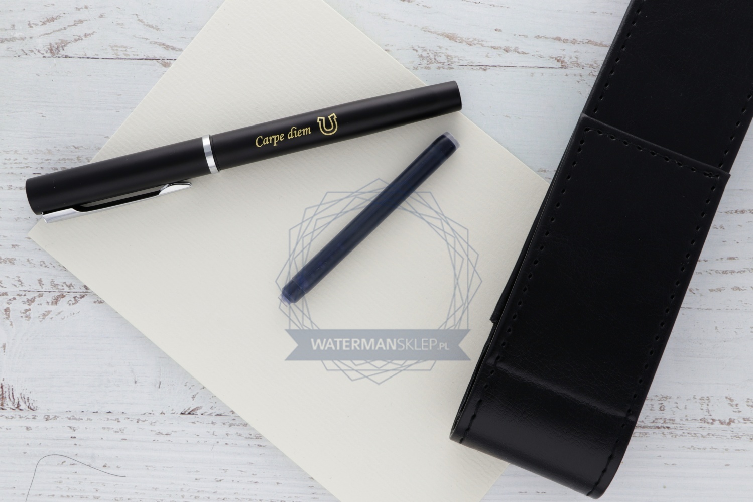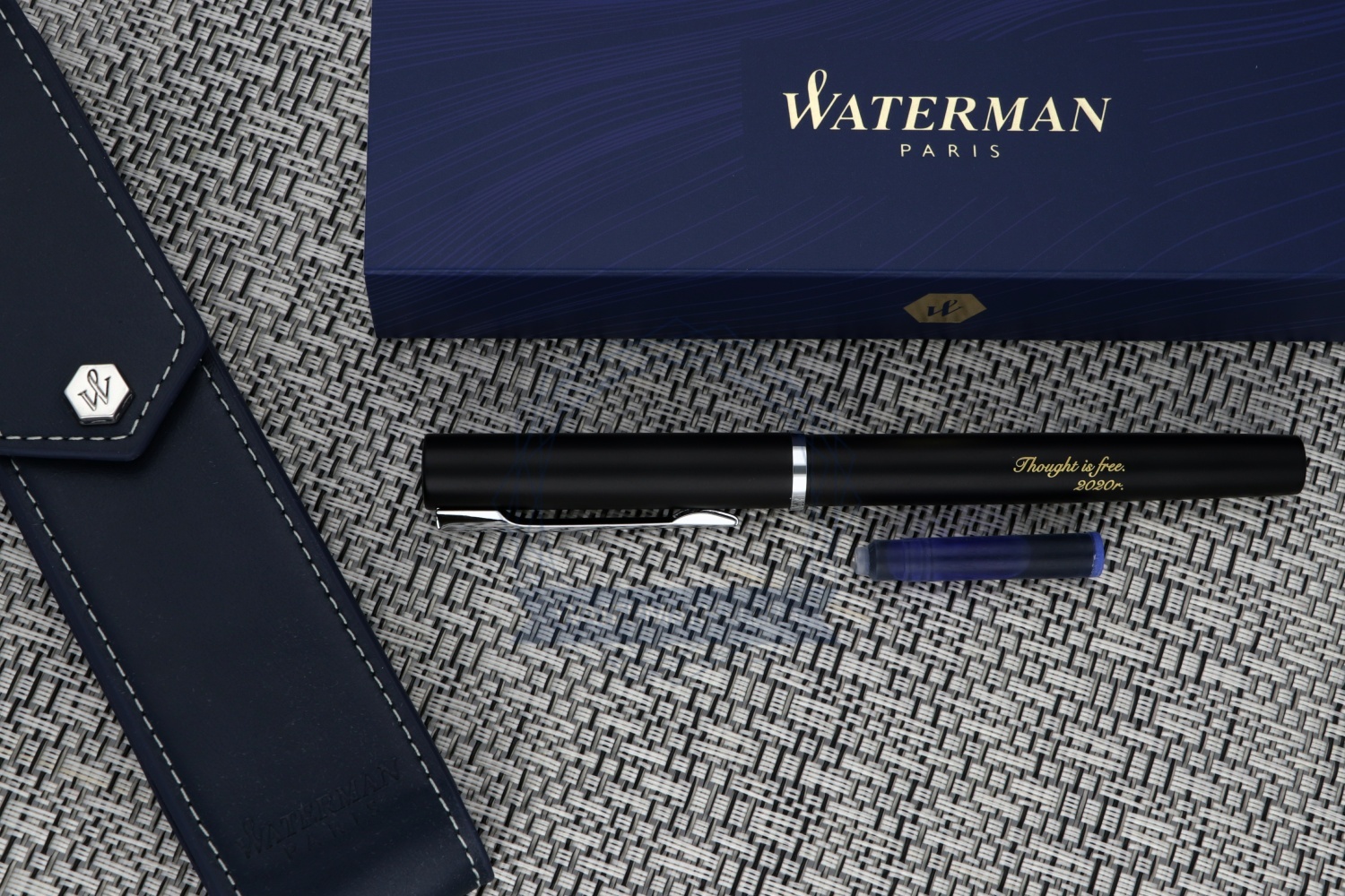 The pen can be loaded with the attached cartridge. It is also compatible with the standard Waterman plunger