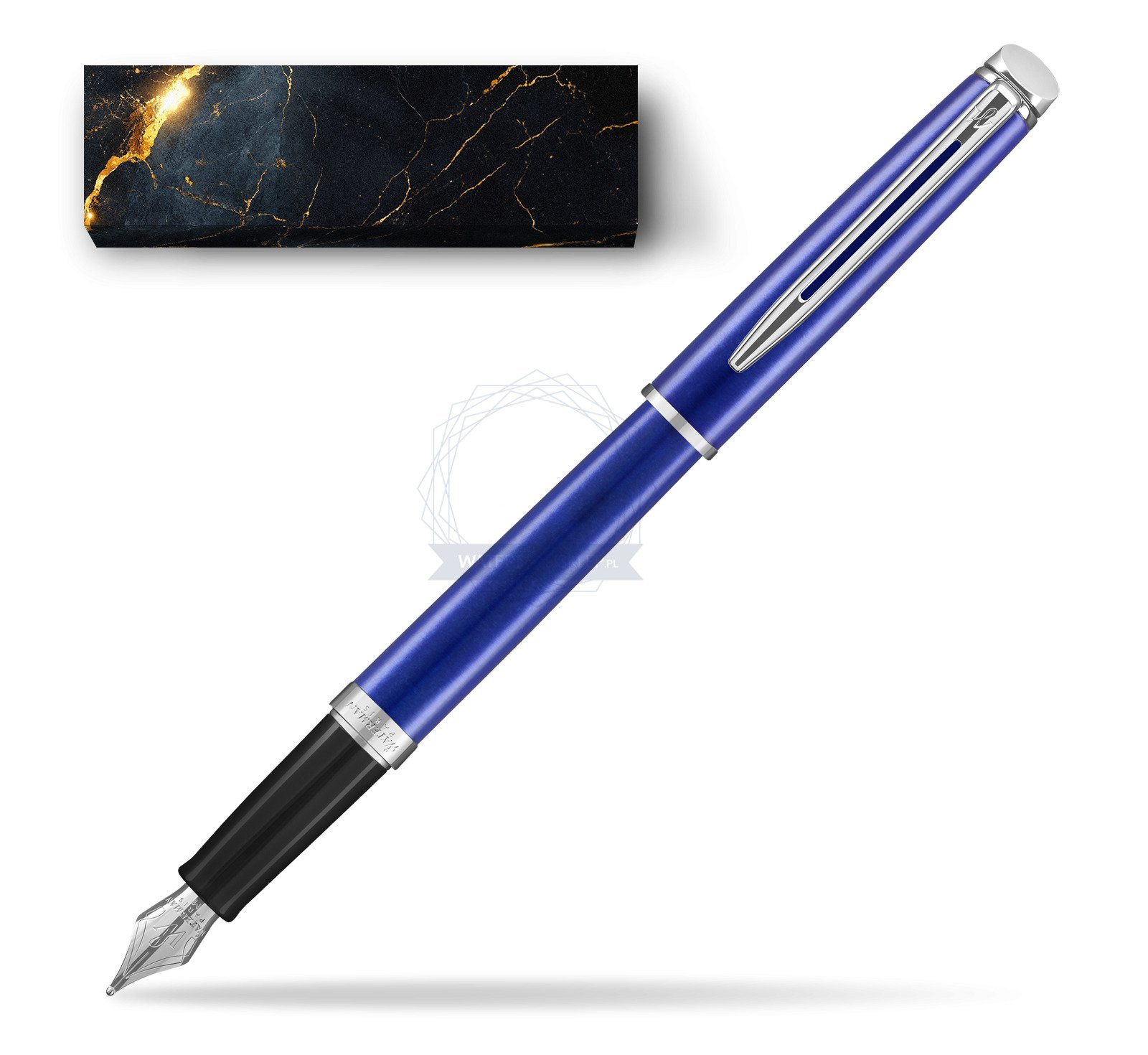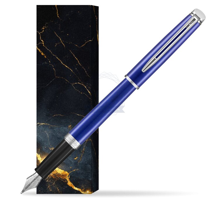 Waterman Hemisphere 2018 Bright Blue CT Fountain Pen in cover Black Marble (2042967_O141C)