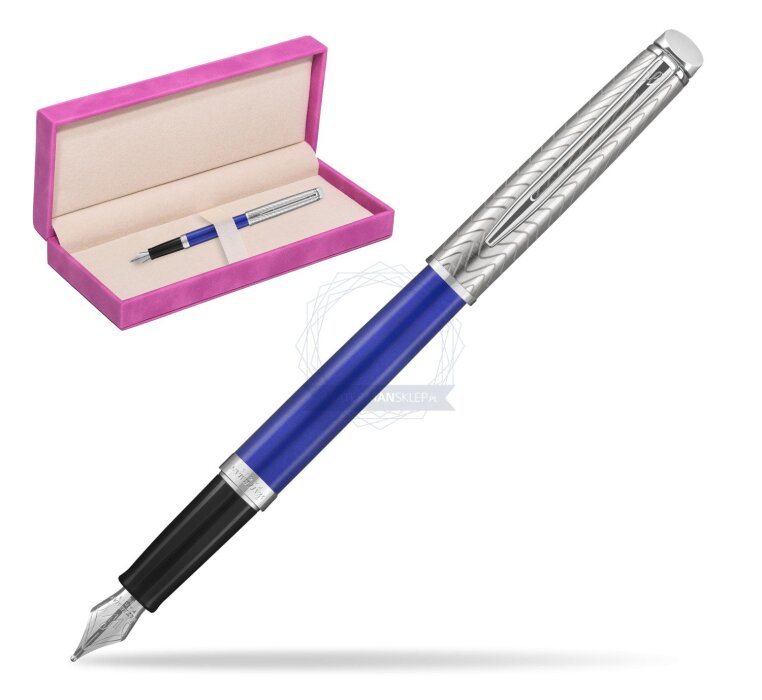Hémisphère makes each moment refreshingly elegant. In the spirit of Waterman innovation, it redefines timeless lines with a new focus on streamlined simplicity. Striking clean design and noble materials come together for a delightful writing experience to inspire your most creative thoughts. The Finish A vibrant blue lacquer finish complete with intricate signature pattern etched onto the pen. The Nib: Comfortable and brilliantly designed, the expertly engraved nib is unmistakable in its writing experience. The Clip Palladium finish. This Waterman Fountain Pen can be refilled with every Waterman Ink cartridges or by Waterman Ink in bottle. This Waterman Fountain Pen comes with nib size F. One ink cartridge included in random blue or black colour.